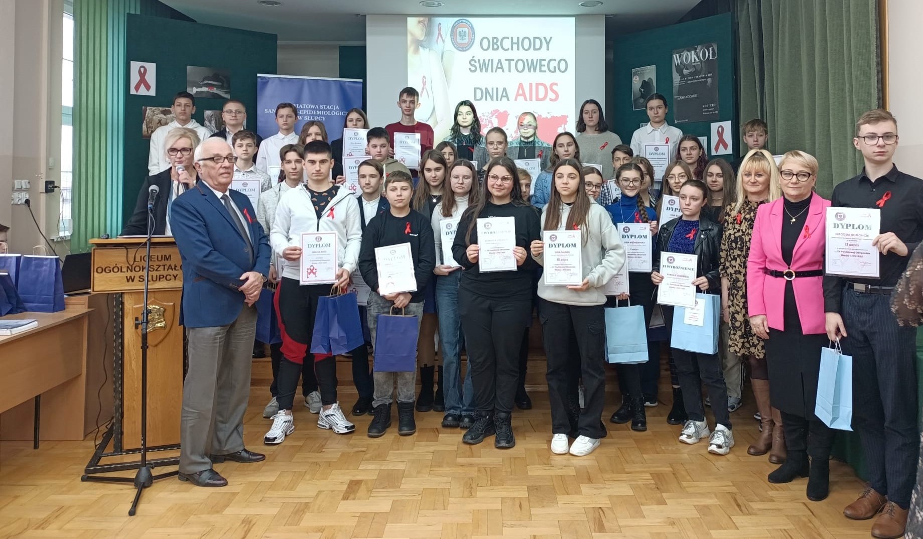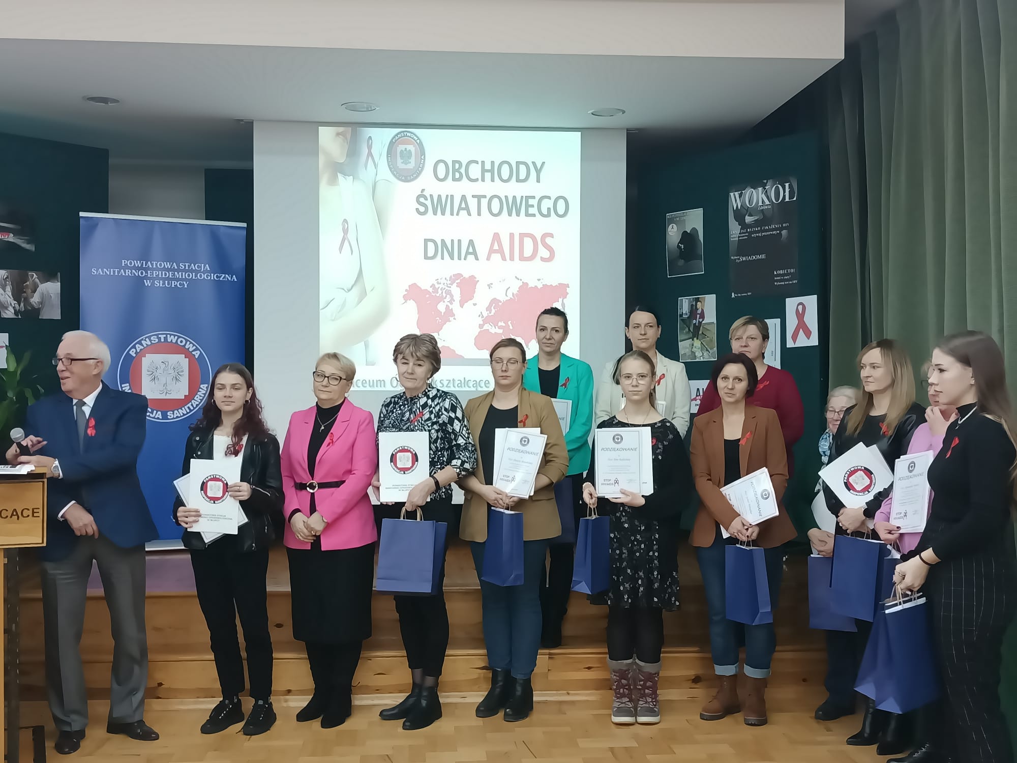 W Liceum Ogólnokształcącym w Słupcy 9 grudnia br pion Oświaty Zdrowotnej i Promocji Zdrowia Powiatowej Stacji Sanitarno – Epidemiologicznej w Słupcy zorganizował Obchody Światowego dnia AIDS.