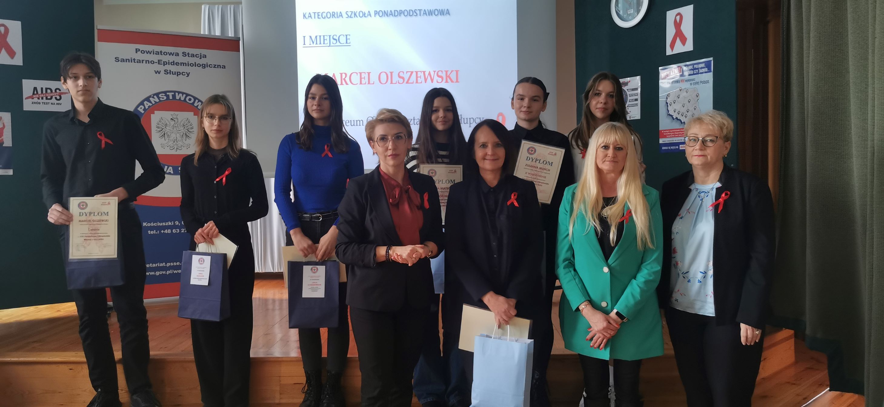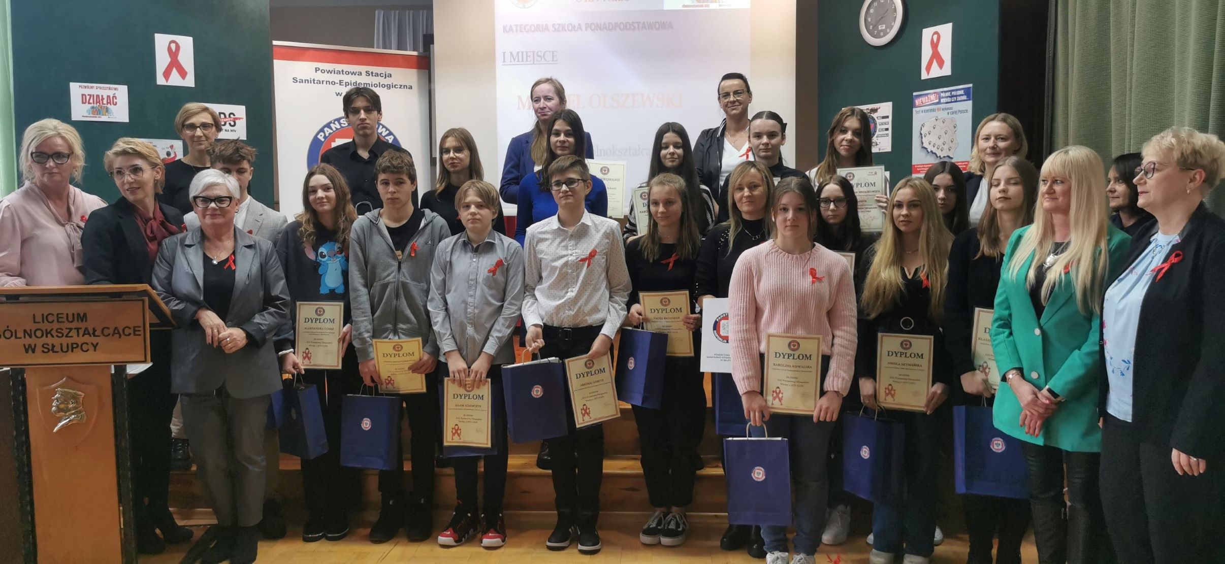 W dniu 8 grudnia br. w Liceum Ogólnokształcącym w Słupcy Powiatowa Stacja Sanitarno – Epidemiologiczna zorganizowała Obchody Światowego dnia AIDS, w których uczestniczyli Państwowy Powiatowy Inspektor Sanitarny w Słupcy Katarzyna Wysocka, Renata Cholewińska (Inspektor Wydział Oświaty w Starostwie Powiatowym w Słupcy), Katarzyna Hoffmann(Inspektor ds. profilaktyki uzależnień w Urzędzie Miasta Słupcy), Agnieszka Żelek ( Inspektor ds. oświaty, wojskowych i obrony cywilnej w Urzędzie Gminy w Strzałkowie), Urszula Radosiewicz (Dyrektor Liceum Ogólnokształcącego w Słupcy), uczestnicy XXI Powiatowej Olimpiady Wiedzy o HIV/AIDS oraz nauczyciele i młodzież z LO w Słupcy.