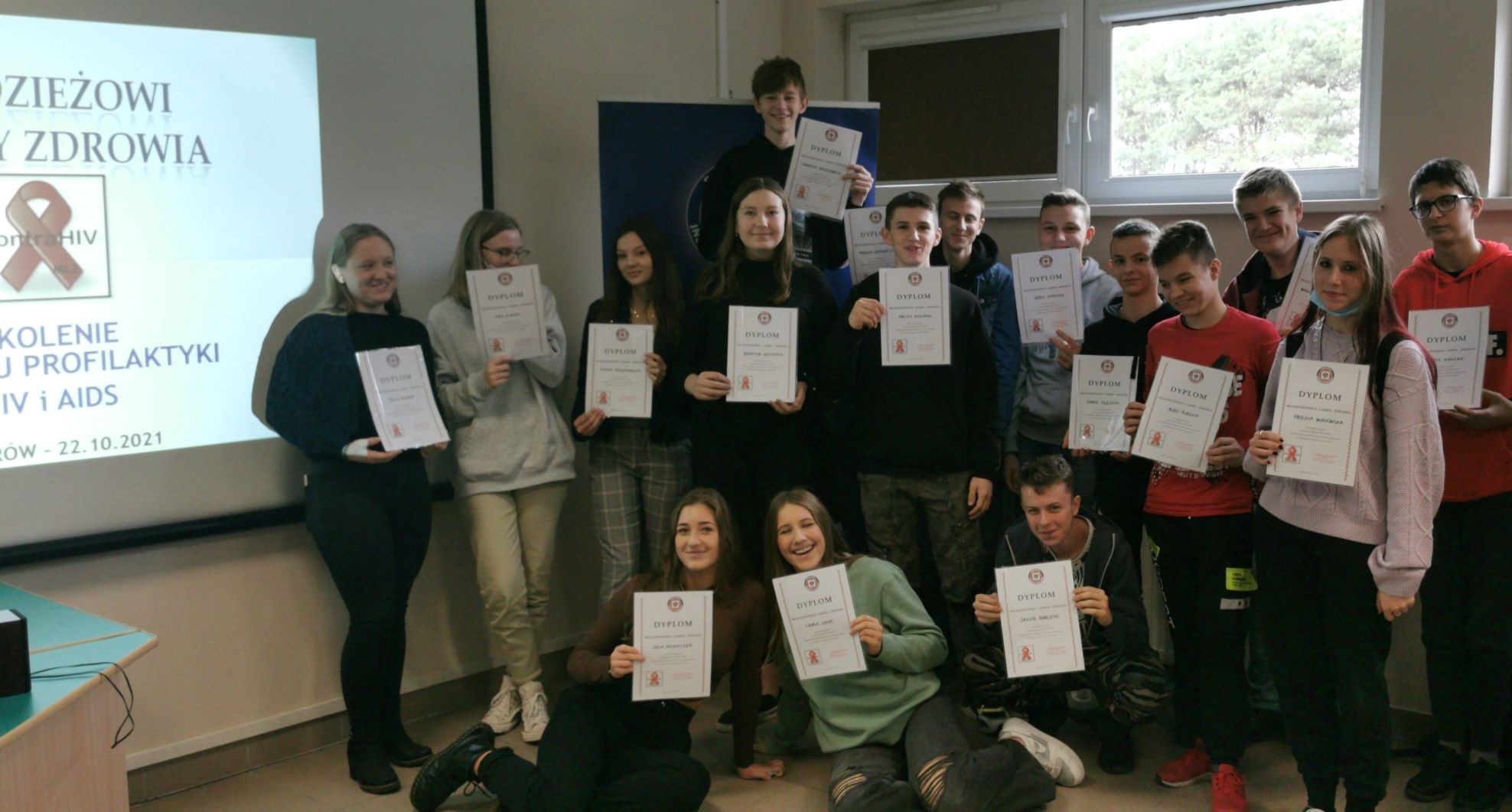 W dniu 22 października 2021r. pracownik pionu oświaty zdrowotnej i promocji zdrowia przeprowadził w Zespole Szkół Ogólnokształcących i Zawodowych w Zagórowie szkolenie z zakresu profilaktyki HIV/AIDS. Celem projektu Młodzieżowy Lider Zdrowia – kontra HIV jest m. in. przekazanie aktualnej wiedzy na temat HIV/AIDS, zapoznanie z sytuacjami, w których może dojść do zakażenia oraz kształtowanie umiejętności w zakresie szacowania ryzyka zakażenia. Zadaniem młodzieży będzie dalsza edukacja rówieśnicza w zakresie HIV/AIDS, która odbywać się może zarówno w oficjalnych sytuacjach szkolnych jak również podczas spotkań nieformalnych. Wszyscy uczestnicy szkolenia otrzymali materiały informacyjno-edukacyjne nt. HIV/AIDS oraz dyplom Młodzieżowego Lidera Zdrowia - kontra HIV. Organizator szkolenia bardzo serdecznie dziękuje dyrekcji ZSO i Z w Zagórowie oraz p. Jolancie Suszce-szkolnemu koordynatorowi wychowania zdrowotnego za pomoc w organizacji przedsięwzięcia.