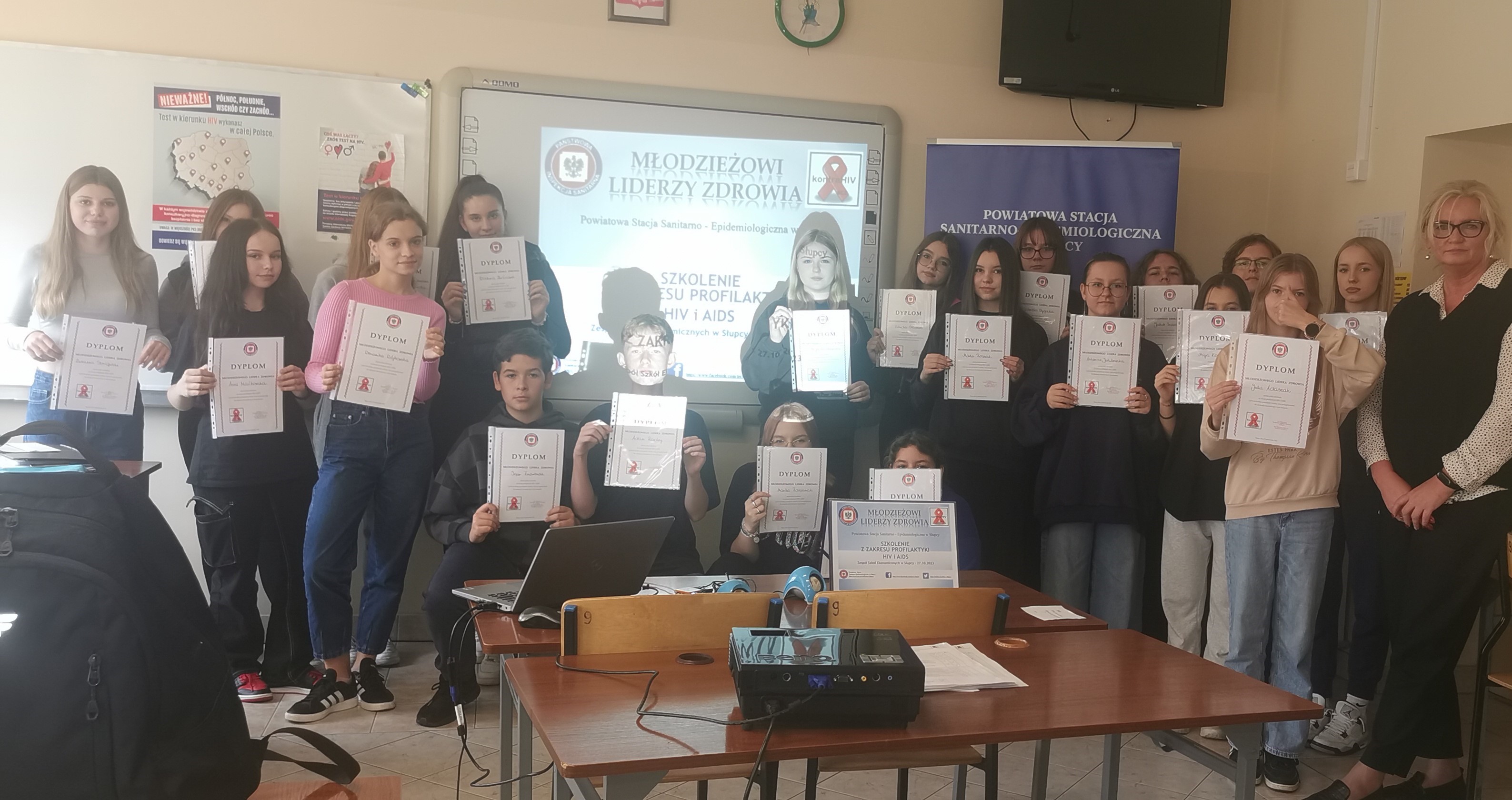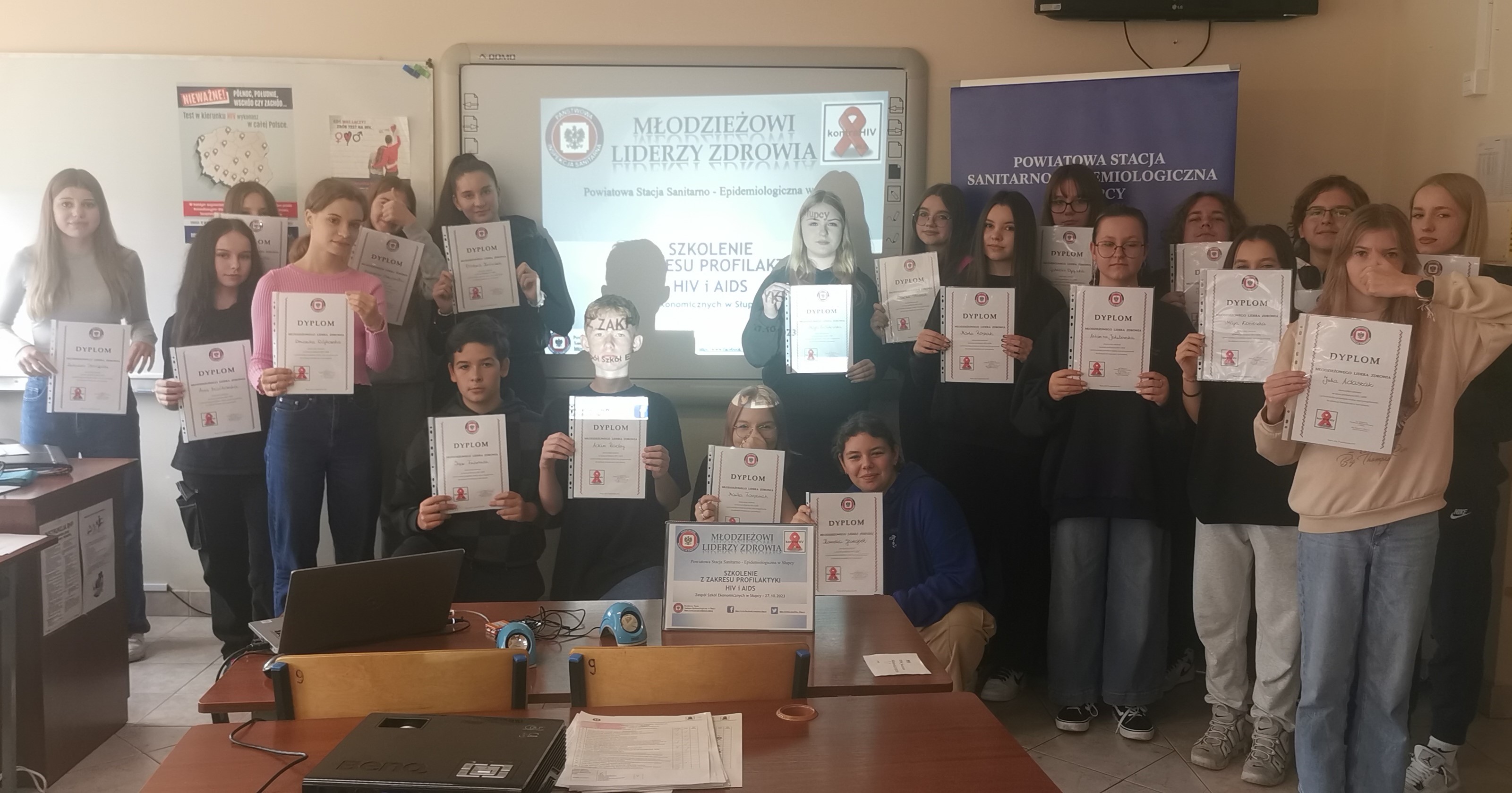 Uczestnicy szkolenia po wysłuchaniu wykładu i zajęciach warsztatowych otrzymali dyplom Młodzieżowego Lidera Zdrowia-kontra HIV oraz tematyczne materiały.