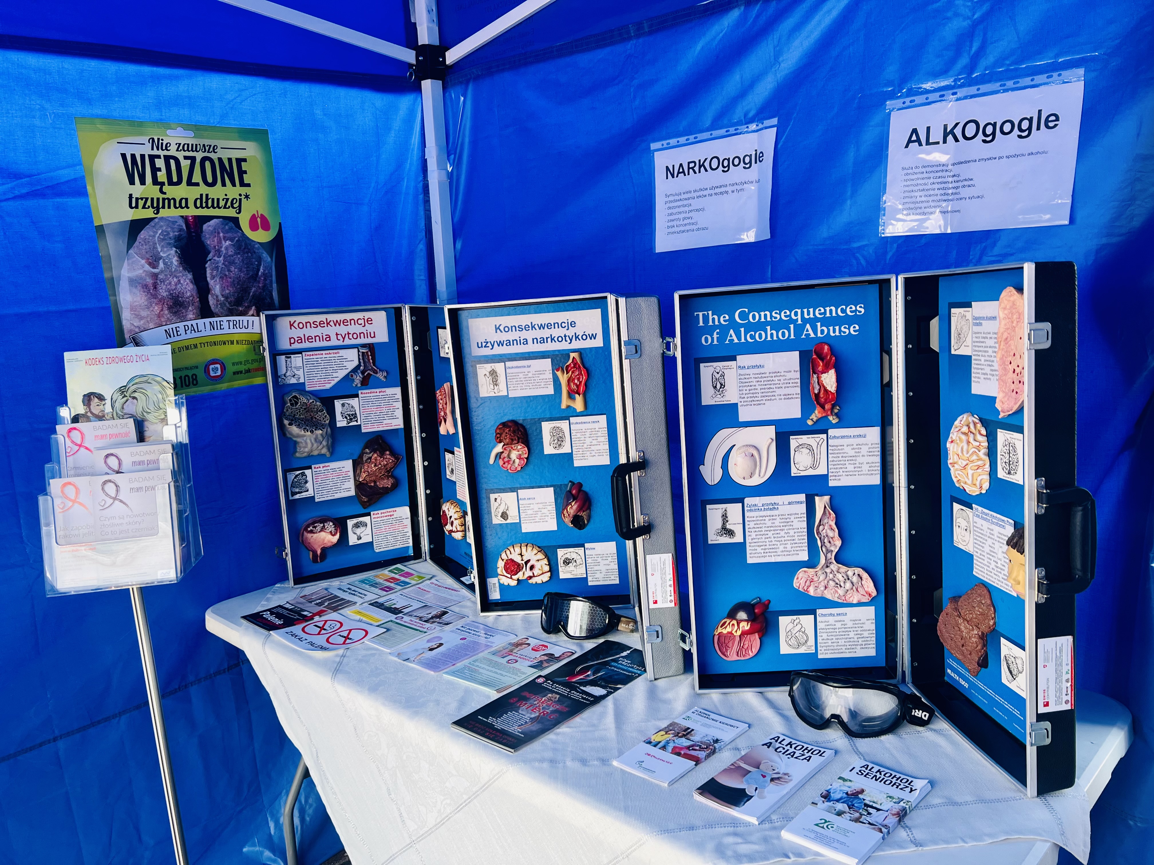 Dzięki uprzejmości WSSE w Warszawie atrakcją stoiska były narkogogle, alkogogle oraz walizki edukacyjne w zakresie profilaktyki uzależnień od tytoniu