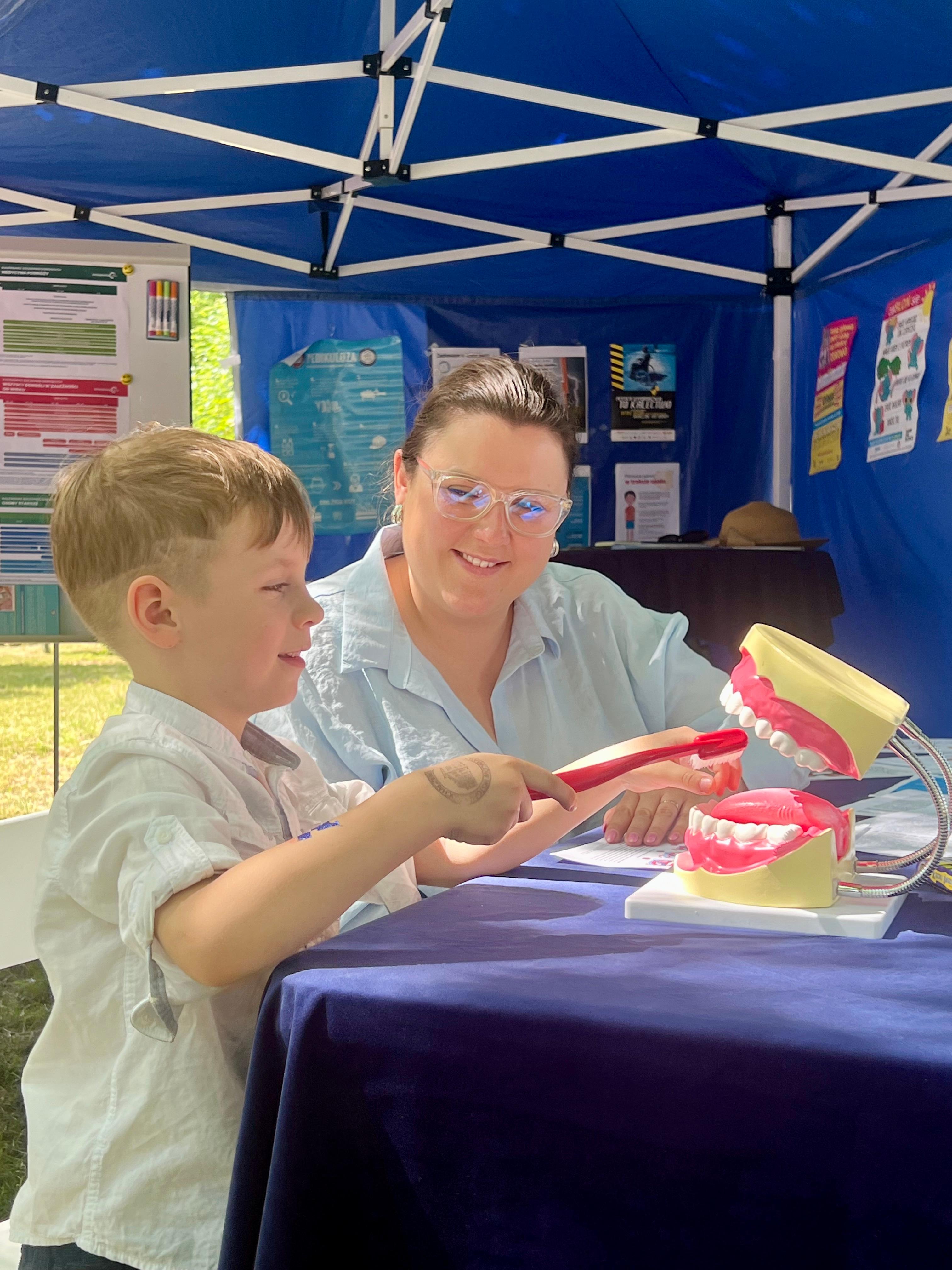 - Profilaktyka próchnicy: Na stoisku znajdował się model do nauki mycia zębów, dzięki któremu dzieci mogły praktycznie nauczyć się prawidłowej techniki szczotkowania. Była to również okazja do rozmowy o znaczeniu regularnych wizyt u dentysty.