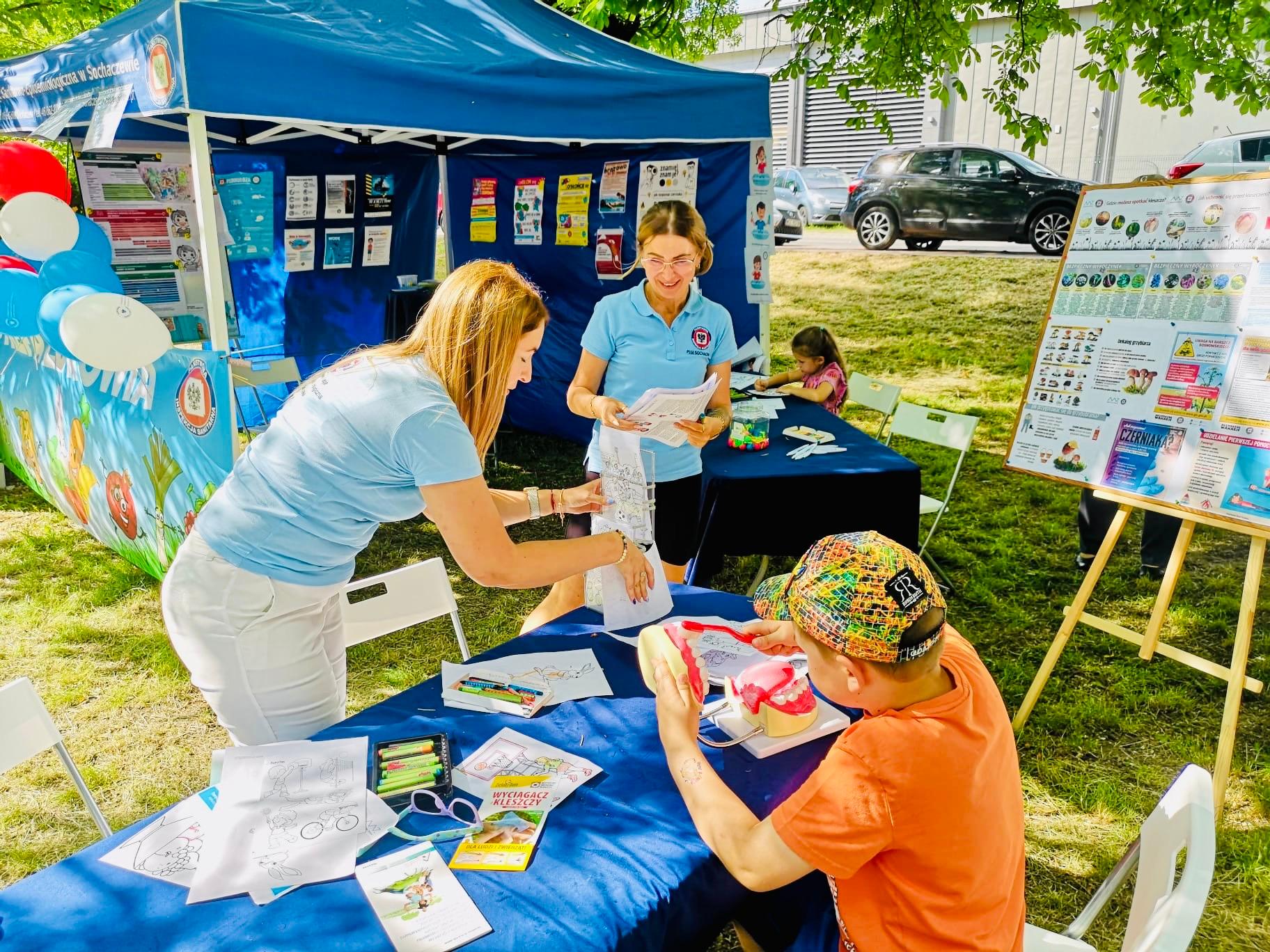 Stoisko oferowało szeroką gamę atrakcji i informacji związanych z promowaniem zdrowia i bezpieczeństwa, dostosowanych do nadchodzącego sezonu letniego: