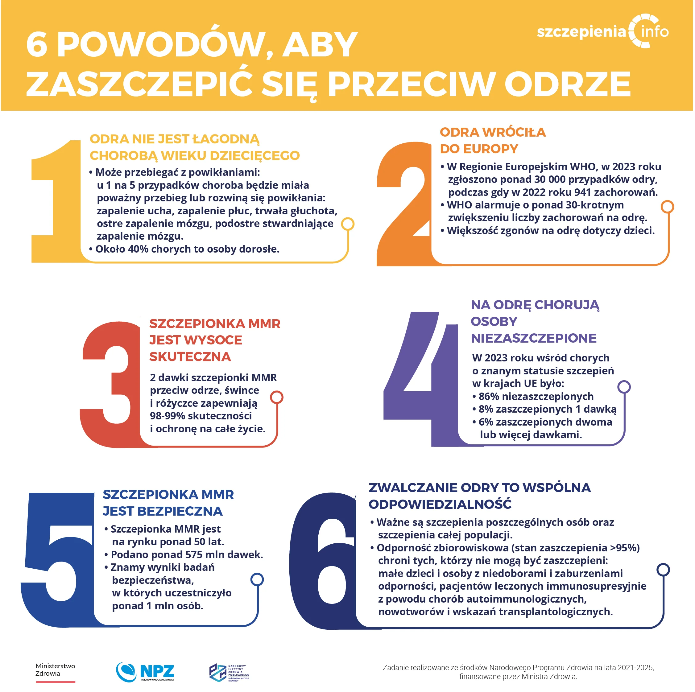 Odra to bardzo zaraźliwa infekcja wirusowa, przenoszona drogą kropelkową. Jest sześciokrotnie bardziej zakaźna niż grypa. Dwie dawki szczepionki zapewniają niemal 100% ochronę przed zakażeniem. Osoby niezaszczepione są narażone na poważne powikłania, w tym zapalenie płuc