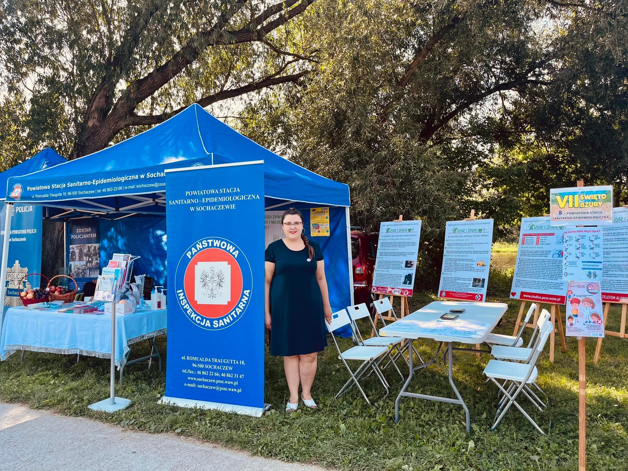 W sobotę 27 sierpnia 2022 r. podczas VII Święta Bzury pracownicy PSSE w Sochaczewie prowadzili stoisko edukacyjno-profilaktyczne. W strefie kredek przypomnieliśmy o higienie rąk i jamy ustnej, z Sochaczewskim WOPR uczyliśmy pierwszej pomocy, na wystawie przedstawiliśmy profilaktykę udaru i zawału oraz piramidę zdrowia, a panie przećwiczyły badanie piersi na fantomach.
