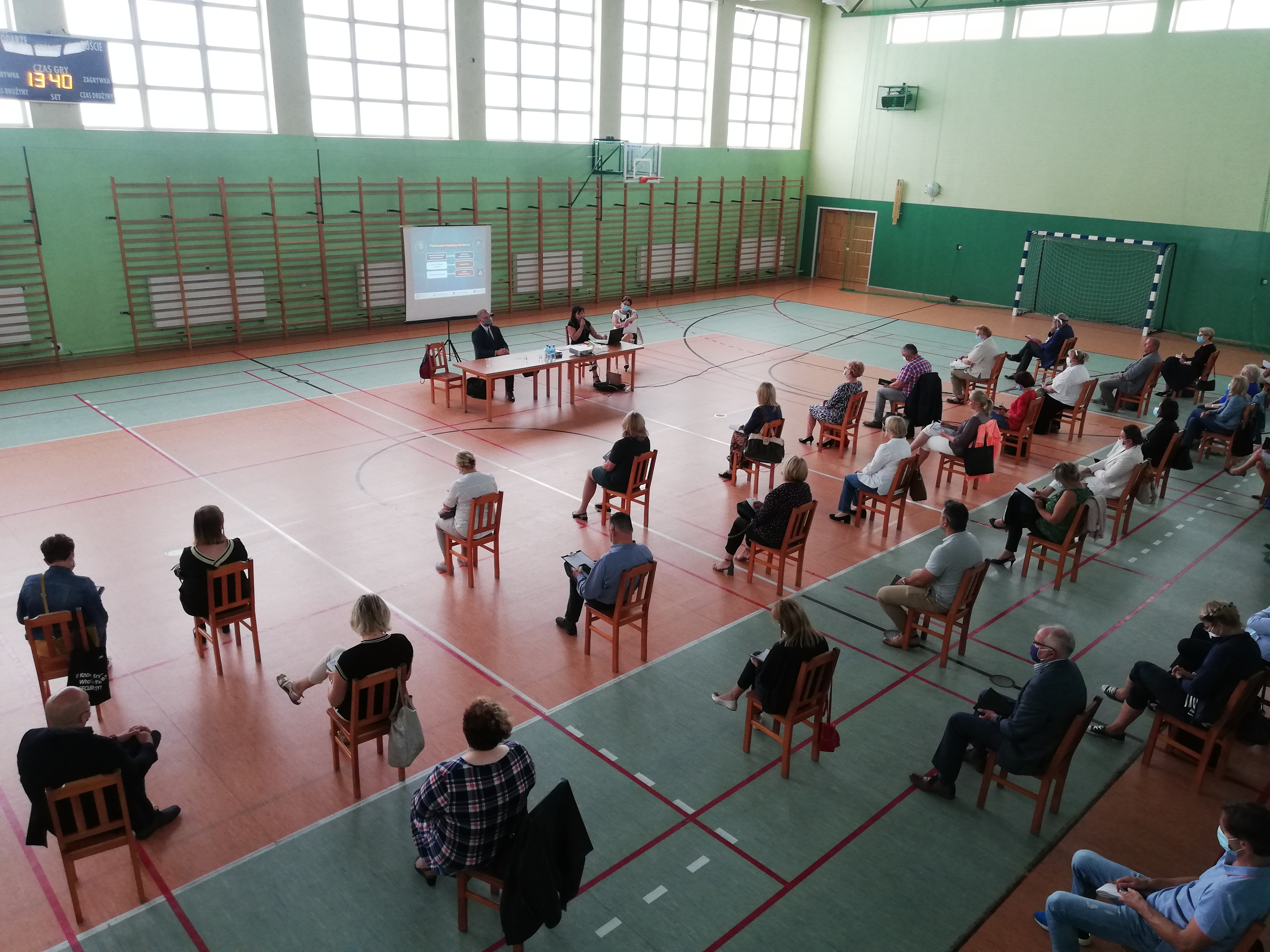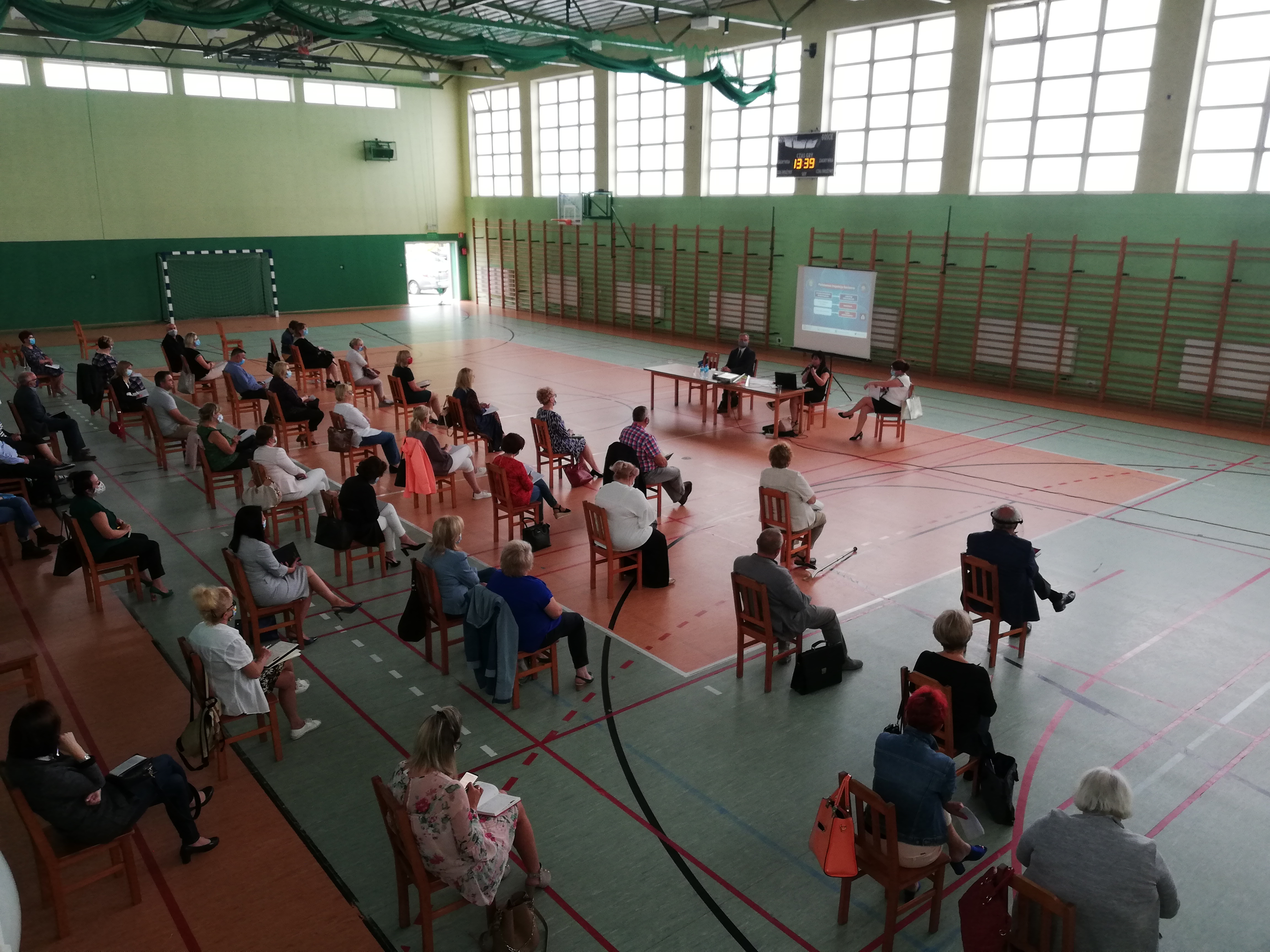 W piątek 28 sierpnia, na zaproszenie Państwowego Powiatowego Inspektora Sanitarnego w Sochaczewie Pani Beaty Fergińskiej, w sali gimnastycznej Szkoły Podstawowej nr 1 w Sochaczewie, odbyło się spotkanie z dyrektorami placówek oświatowo-wychowawczych z terenu powiatu sochaczewskiego w związku z rozpoczęciem roku szkolnego 2020/2021 w stanie epidemii.