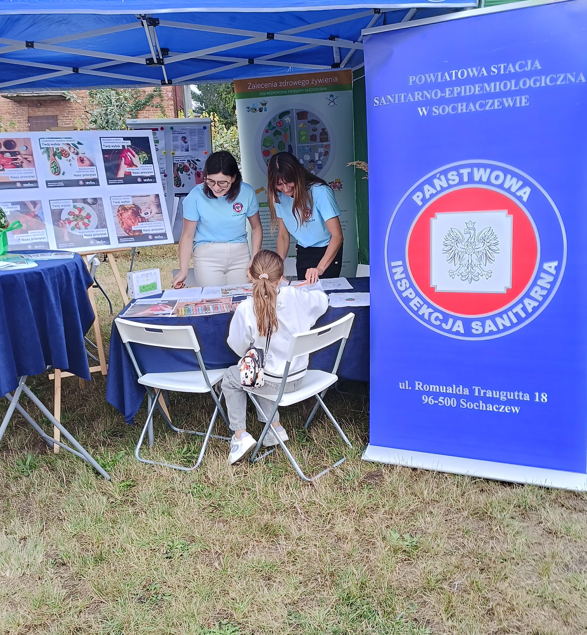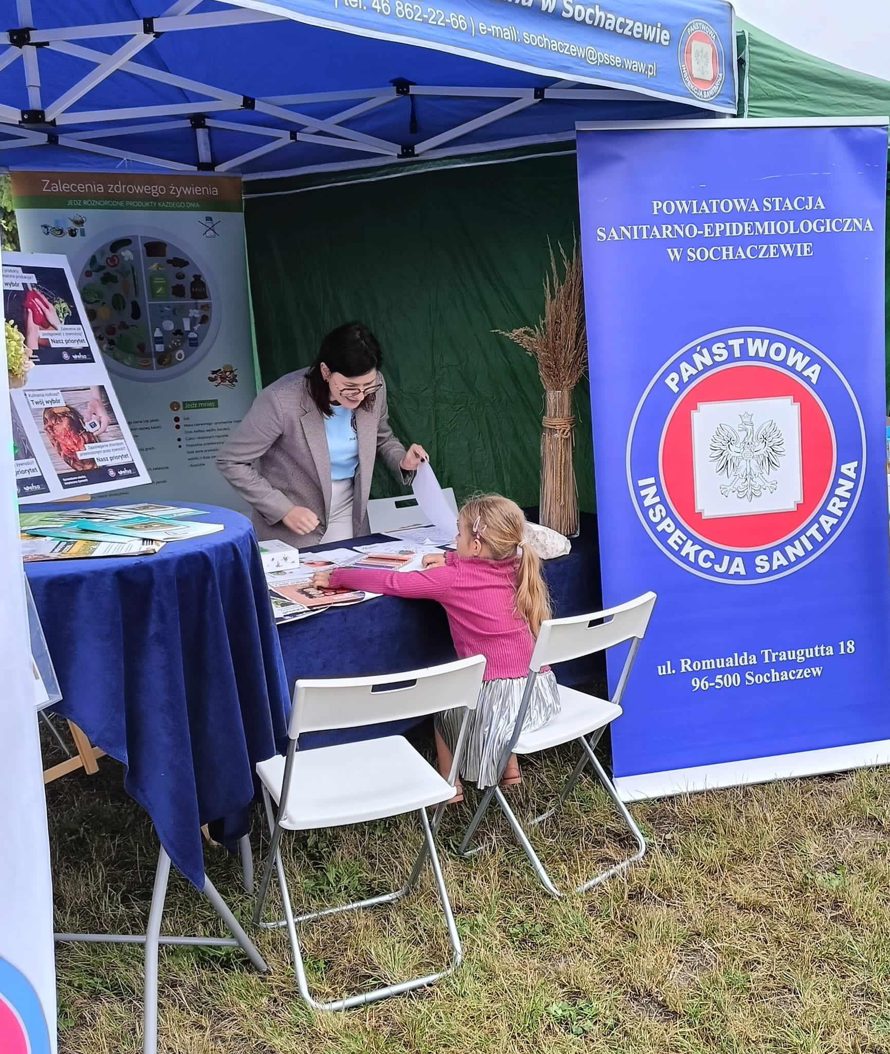 Stoisko edukacyjno-informacyjne PSSE w Sochaczewie podczas Dożynek Gminnych w Giżycach