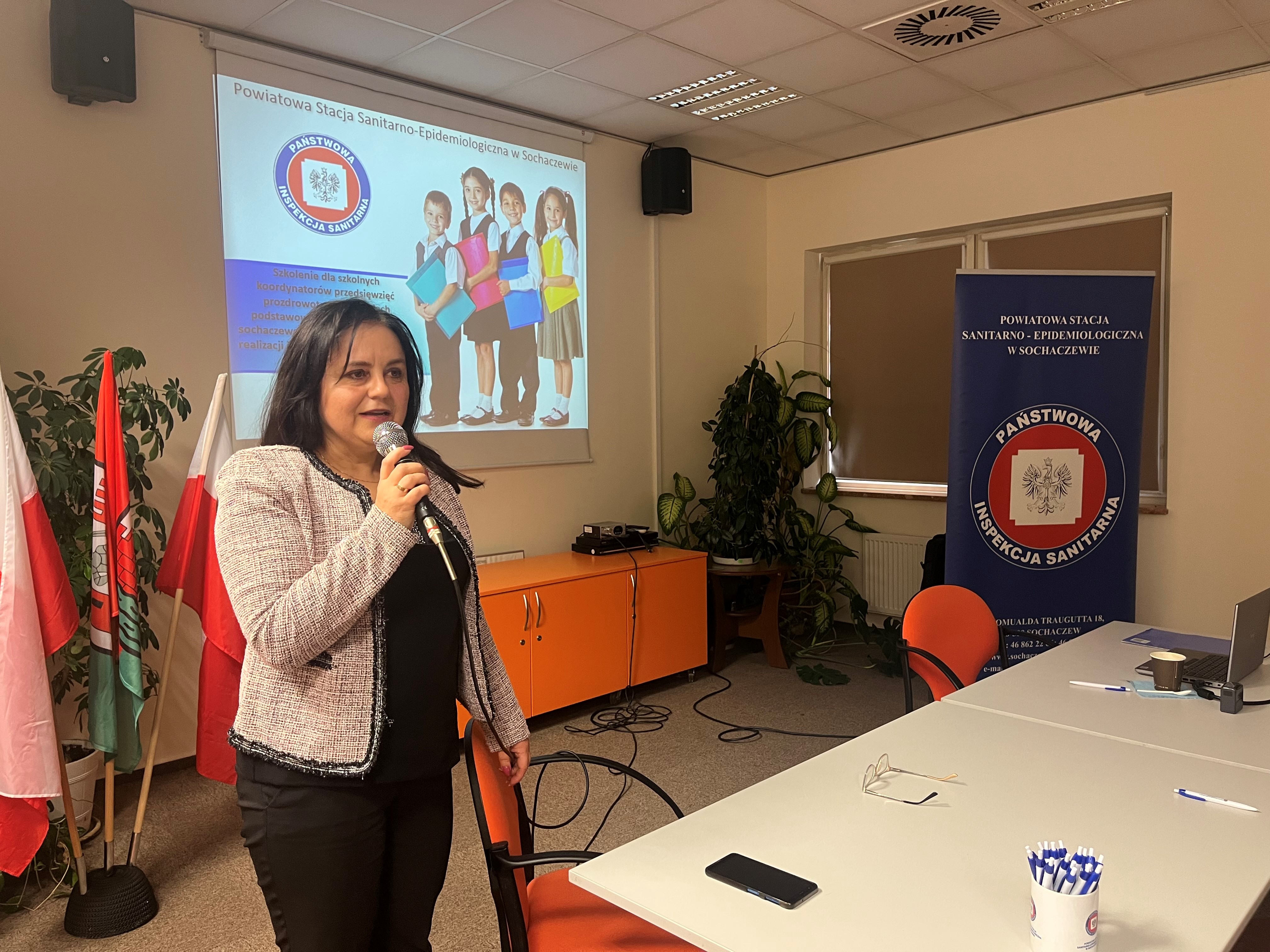 Uczestników spotkania powitała Beata Fergińska – Państwowy Powiatowy Inspektor Sanitarny w Sochaczewie, która przedstawiła rolę Inspekcji Sanitarnej w działaniach edukacyjnych. Przypomniała o deklaracji współpracy, podpisanej w 2018 roku pomiędzy Ministrem Edukacji Narodowej a Głównym Inspektorem Sanitarnym, w której to strony zadeklarowały współpracę na rzecz rozwoju edukacji zdrowotnej w środowisku szkolnym oraz wymianę informacji niezbędnych do zapewnienia higienicznych warunków nauczania dzieci i młodzieży.
