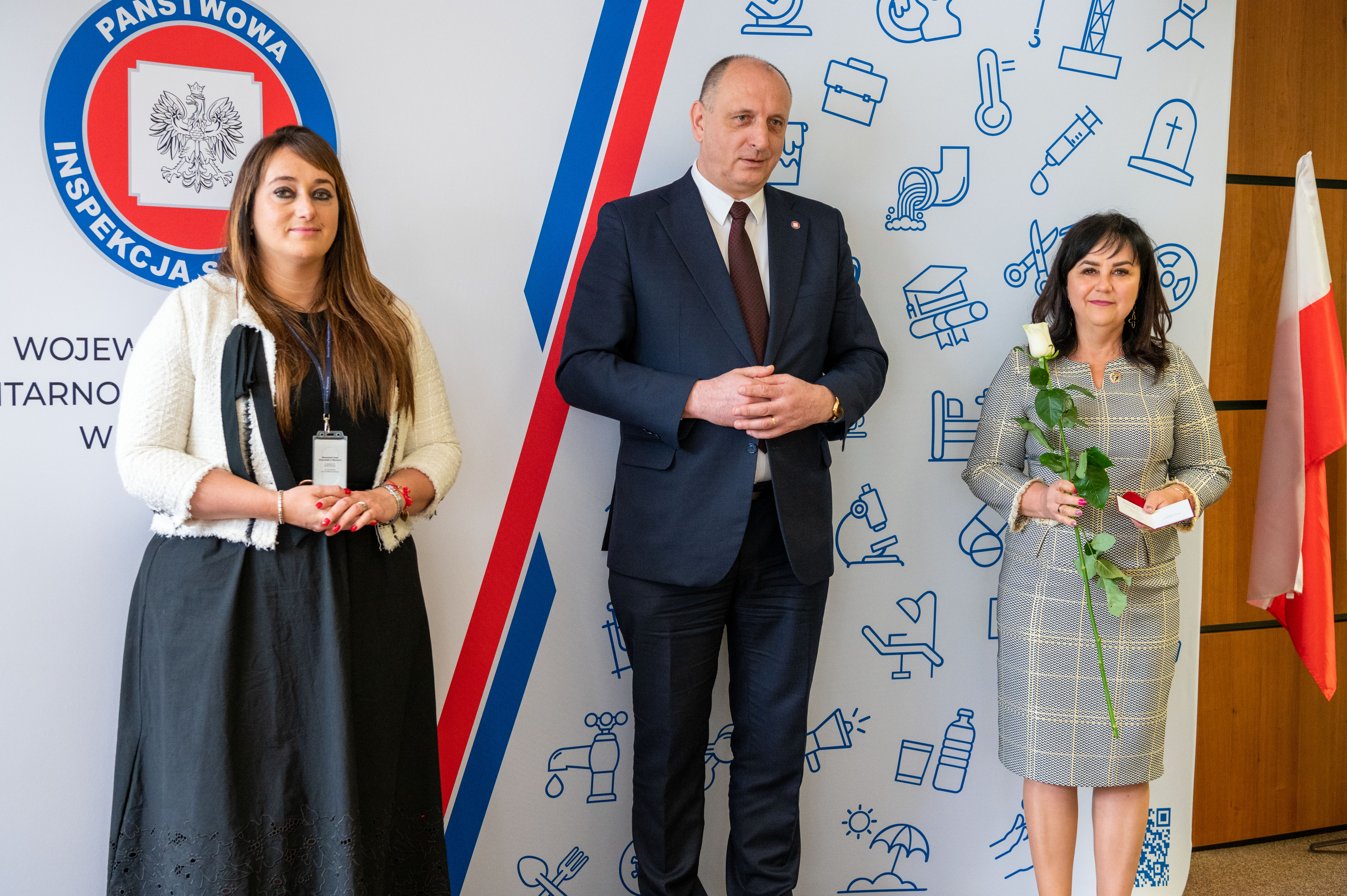 Odznaczenia trafiły m.in. do rąk Beaty Fergińskiej – Państwowego Powiatowego Inspektora Sanitarnego w Sochaczewie oraz Aliny Buczyńskiej – Kierownika Sekcji Higieny Żywności i Żywienia PSSE w Sochaczewie