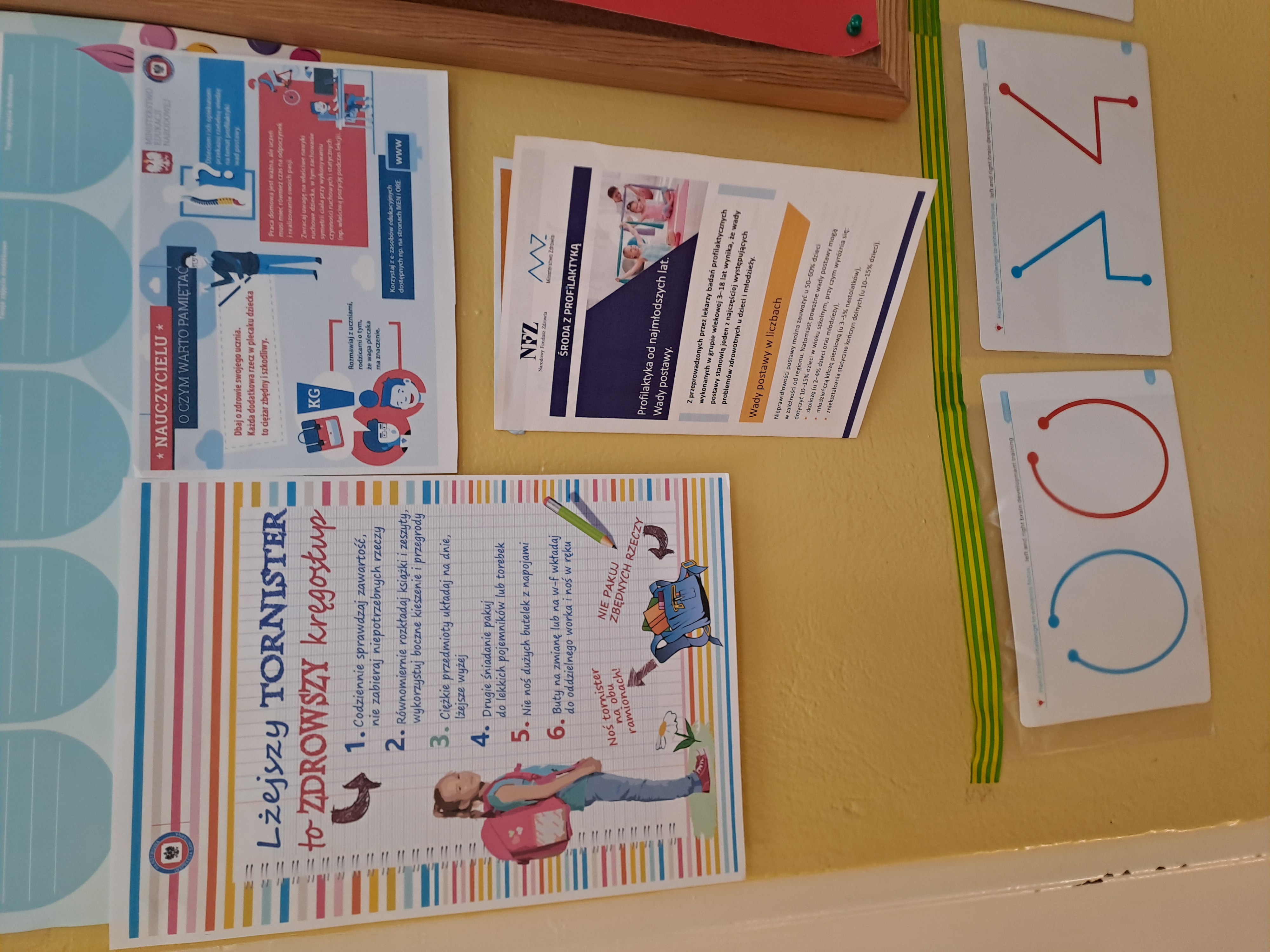 Uczniowie otrzymali ulotki oraz malowanki na temat zasad pakowania tornistra/plecaka. W placówkach pozostawiono ulotki skierowane do rodziców i nauczycieli dotyczące profilaktyki wad postawy.