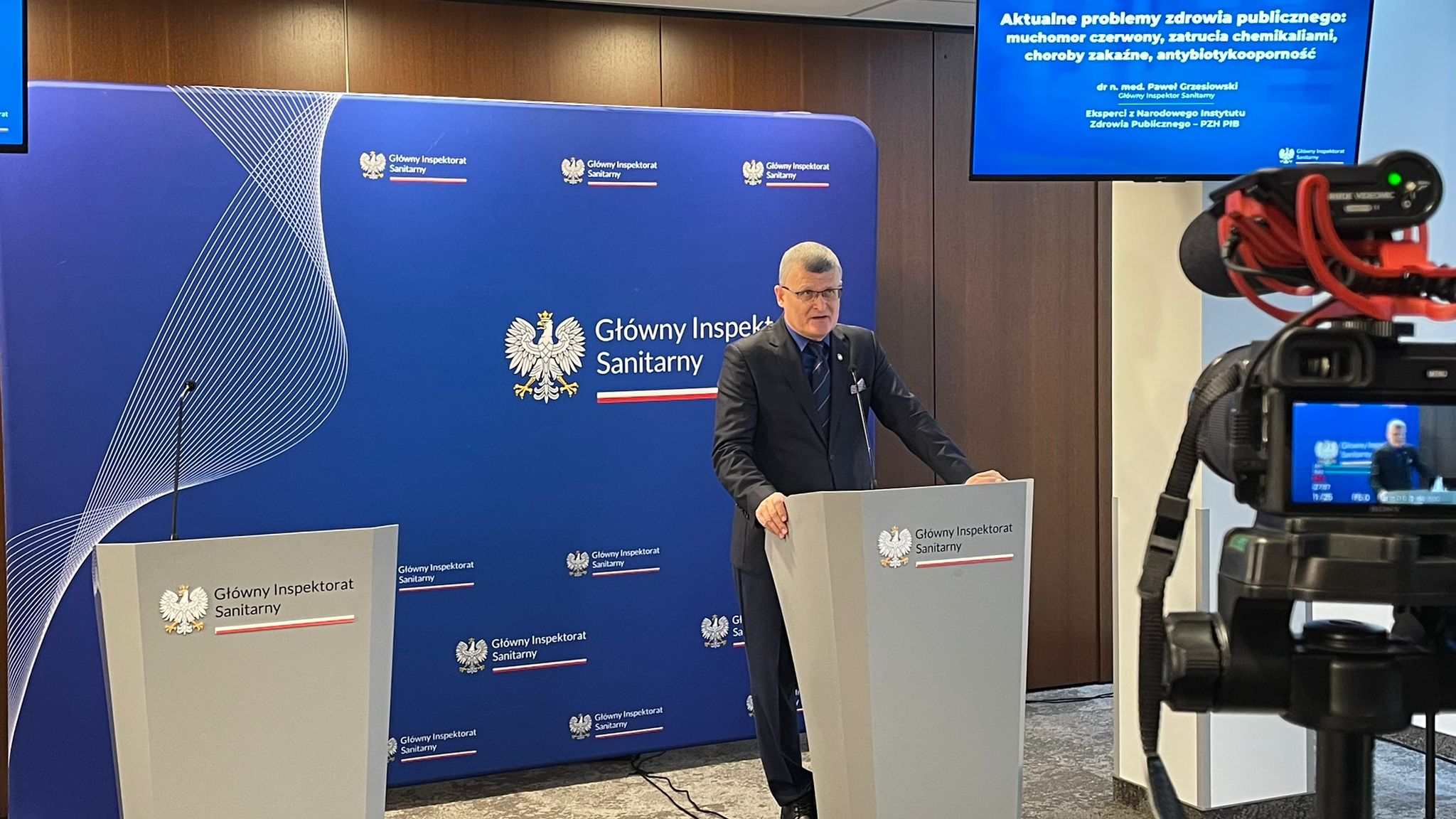 Główny Inspektor Sanitarny dr n. med. Paweł Grzesiowski przekazał 18.11.2024 podczas konferencji w Warszawie informacje na temat bieżących zagrożeń dla zdrowia publicznego.