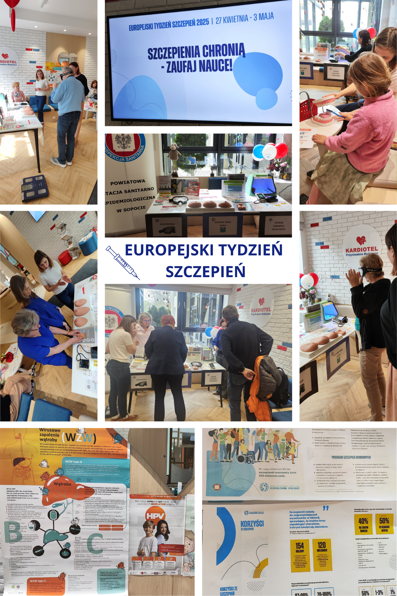 W ramach Europejskiego Tygodnia Szczepień pracownicy PSSE w Sopocie przy zorganizowanym stanowisku prozdrowotnym w Centrum Medycznym „Kardiotel” w Sopocie promowali szczepienia ochronne. Prowadzono porady o sposobach ochrony przed zakażeniami, skuteczności szczepień, omawiano kalendarze szczepień ochronnych. Dorosłych instruowano na fantomach, jak prawidłowo badać piersi i jądra. Rozmawiano o profilaktyce nowotworowej, zdrowym żywieniu, profilaktyce zakażeń HIV, mówiono o szkodliwości palenia tytoniu i e-papierosów.