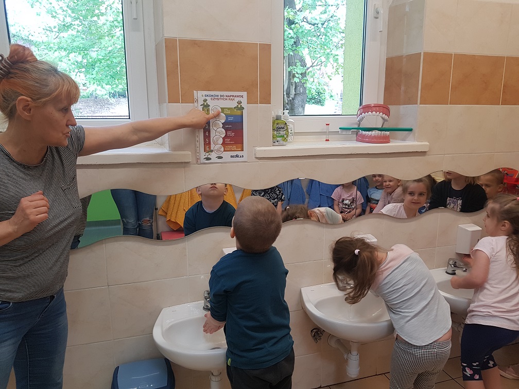 Pracownik oświaty zdrowotnej Powiatowej Stacji Sanitarno - Epidemiologicznej w Sosnowcu, wczoraj, na terenie Przedszkola Miejskiego nr 14 w Sosnowcu zorganizował spotkanie z dziećmi. Spotkanie miało na celu zwrócenie uwagi najmłodszych na zasady mycia rąk i kwestie utrzymywania ich w czystości. Podczas spotkania zostały poruszone także kwestie wpływu czystych rąk na stan zdrowia człowieka. Rozmawiano również o Światowym Dniu Higieny Rąk, przypadającym na dzień 5 maja.