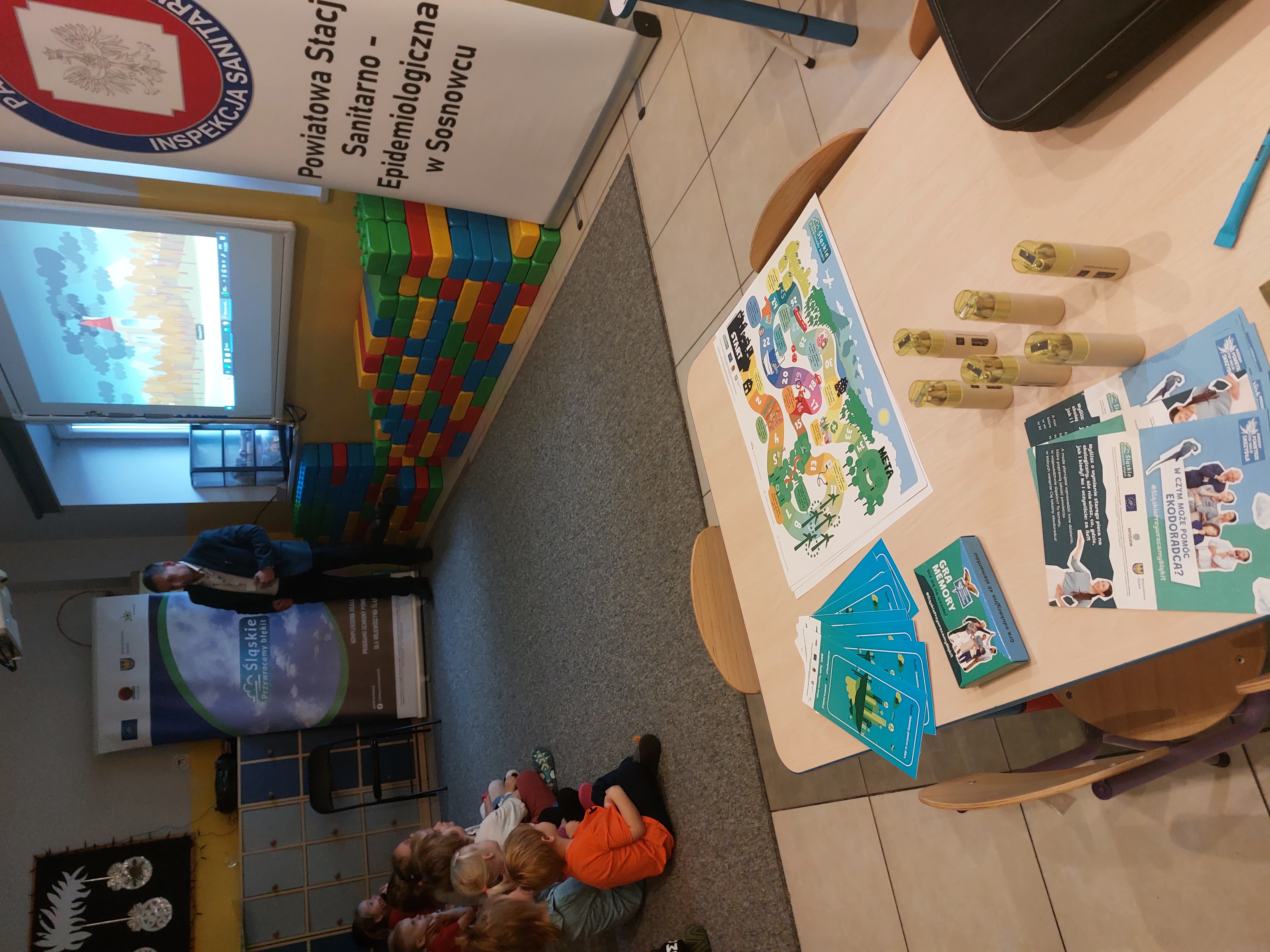 W trakcie zajęć dzieci zostają zapoznane z tematyką ekologii. Szczególną uwagę podczas spotkania prowadzący poświęcają zagrożeniu, jakie niesie dla zdrowia człowieka zanieczyszczone powietrze. Na koniec zajęć maluchom z Przedszkola "Domowe Przedszkole" w Sosnowcu dla utrwalenia tematu rozdano edukacyjne kolorowanki. Nauczycielom wręczono ekologiczne gry planszowe. W placówce przedszkolnej pozostaną również ulotki, książeczki edukacyjne i plakaty, aby tematyką zanieczyszczonego powietrza, jakie wywołuje ono skutki i jak skutecznie przeciwdziałać temu zjawisku zainteresować dodatkowo osoby dorosłe.