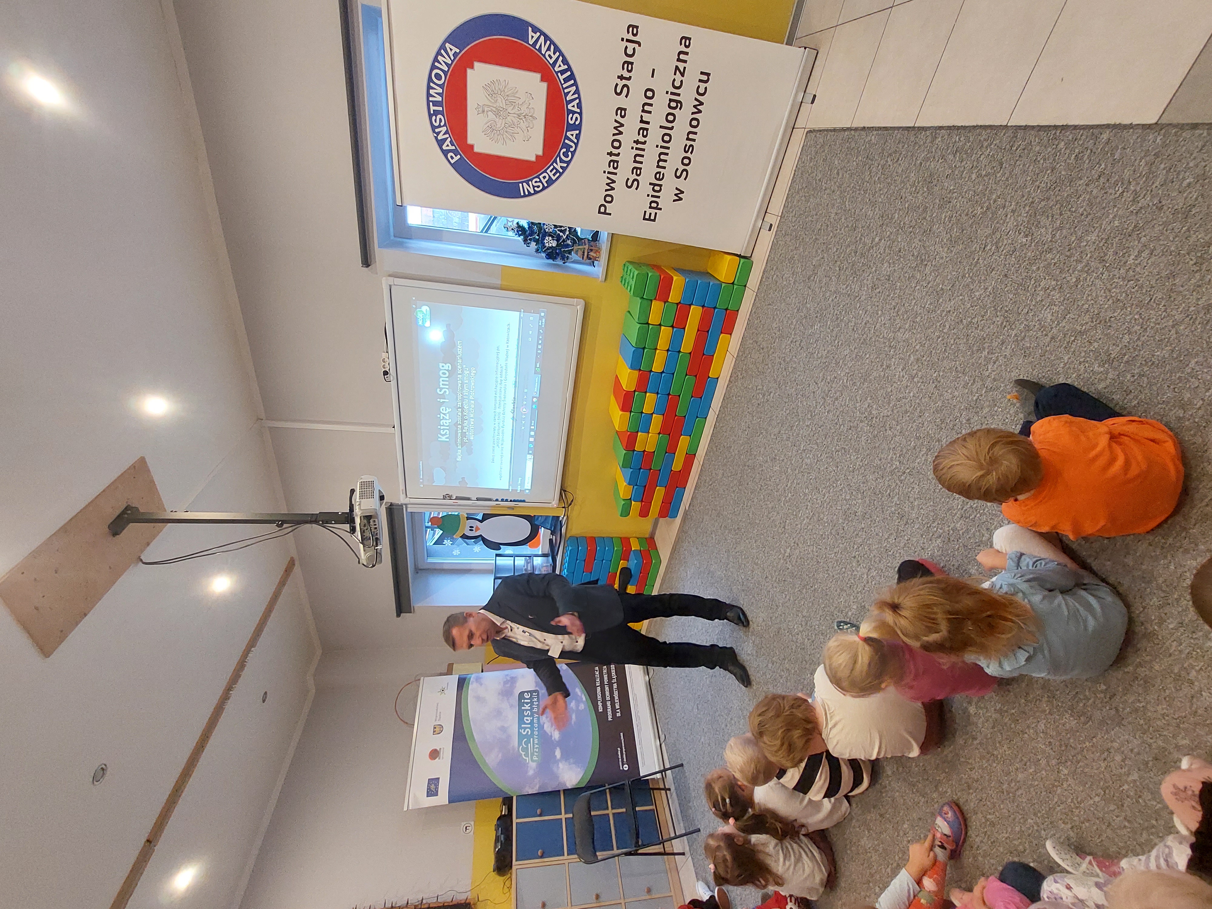 Pracownicy Oświaty Zdrowotnej PSSE w Sosnowcu wspólnie z Ekodoradcą z Urzędu Miejskiego w Sosnowcu realizują zajęcia profilaktyczne z modułu „Czyste powietrze wokół nas” ,stanowiącego część Programu Profilaktycznego „Klub Zdrowego Przedszkolaka”.