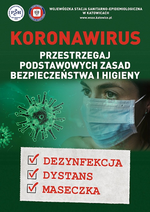 SARS-CoV-2. Wirus SARS-CoV-2 jest nowym szczepem, po raz pierwszy wyizolowanym z trzech osób z zapaleniem płuc związanym z grupą przypadków ostrej choroby układu oddechowego w Chinach. Pierwsze przypadki nowej choroby odnotowano w grudniu 2019 roku. W Polsce od marca 2020 r. do końca grudnia 2021 r. potwierdzono ponad 4 mln przypadków zakażeń koronawirusem, natomiast w woj. śląskim ponad 500 tys. zakażeń. Typowymi objawami chorobowymi COVID-19 są: gorączka, kaszel i duszność. Wirus rozprzestrzenia się drogą kropelkową. Istotne w profilaktyce zakażeń jest przestrzeganie podstawowych zasad bezpieczeństwa i higieny, takich jak:
