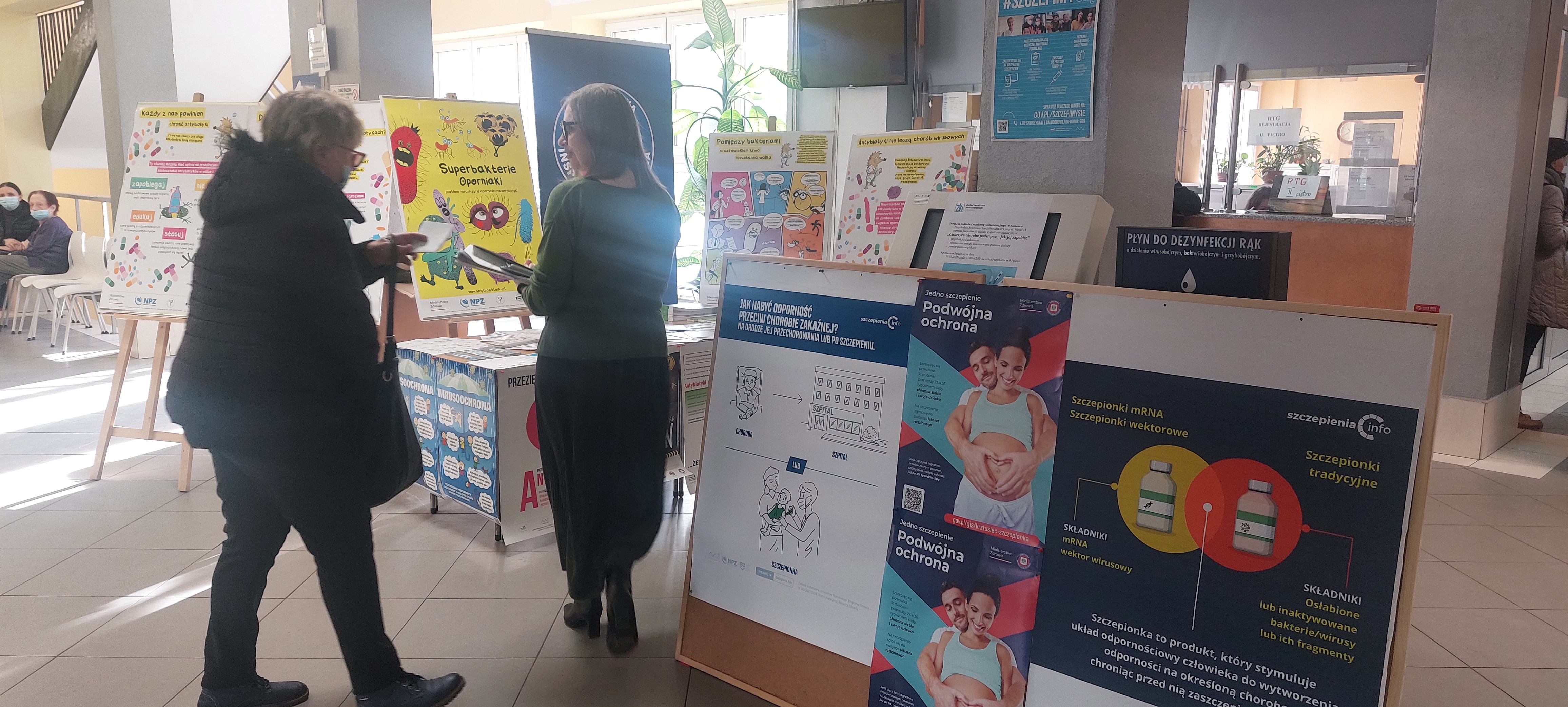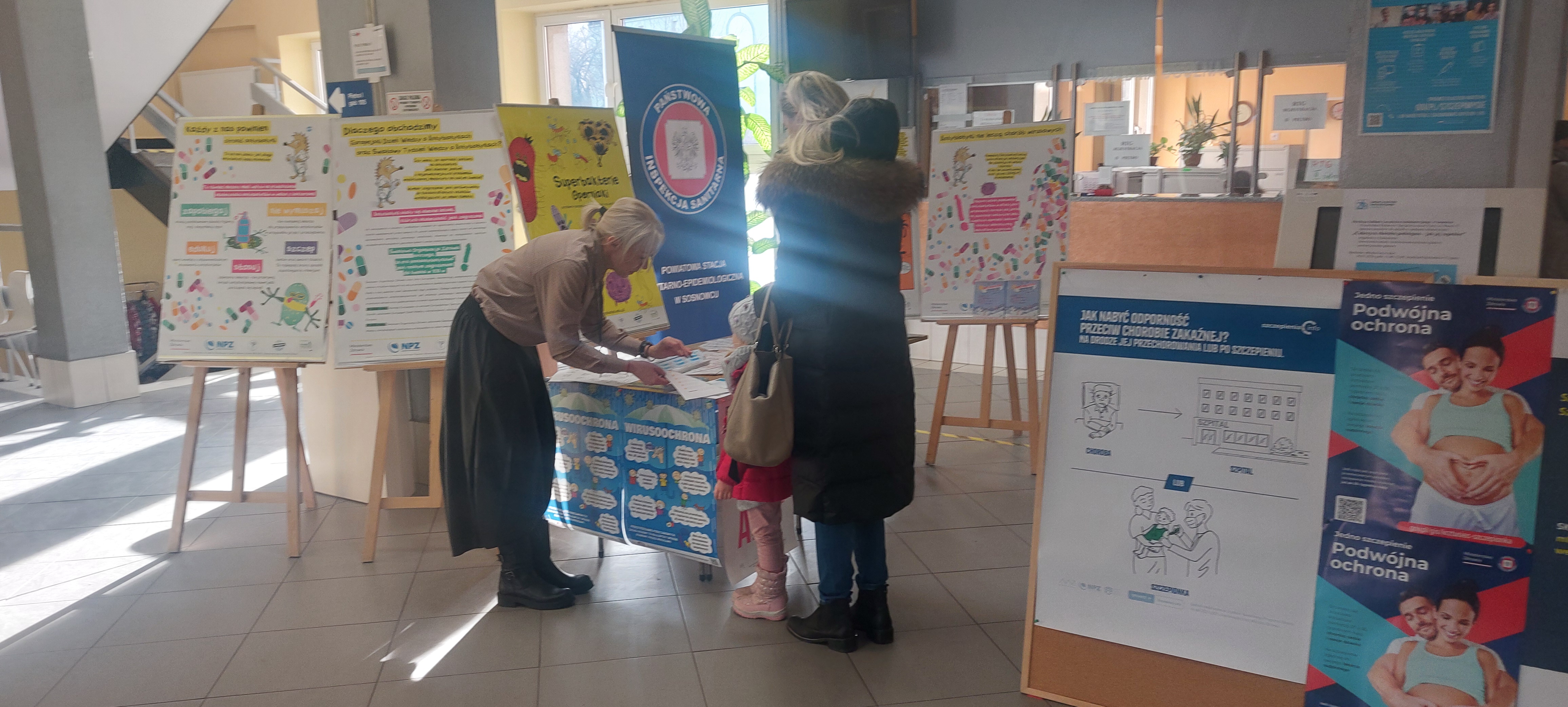 Najmłodsi pacjenci byli edukowani pod kątem higieny rąk w profilaktyce chorób zakaźnych w ramach wojewódzkiej akcji edukacyjnej pod hasłem Wirusoochrona, natomiast ich opiekunowie otrzymywali materiały promujące i informacyjne na temat szczepień ochronnych. Poradni ginekologicznej został przekazany plakat promujący szczepienie dla kobiet w ciąży pod hasłem "Jedno szczepienie podwójna ochrona" oraz zalecenia Ministra Zdrowia dotyczące szczepień przeciw krztuścowi kobiet w ciąży. Seniorzy, którzy są grupą szczególnie narażoną na infekcje wirusowe i bakteryjne byli zachęcani do szczepień, jako skutecznego sposobu ochrony zdrowia.
