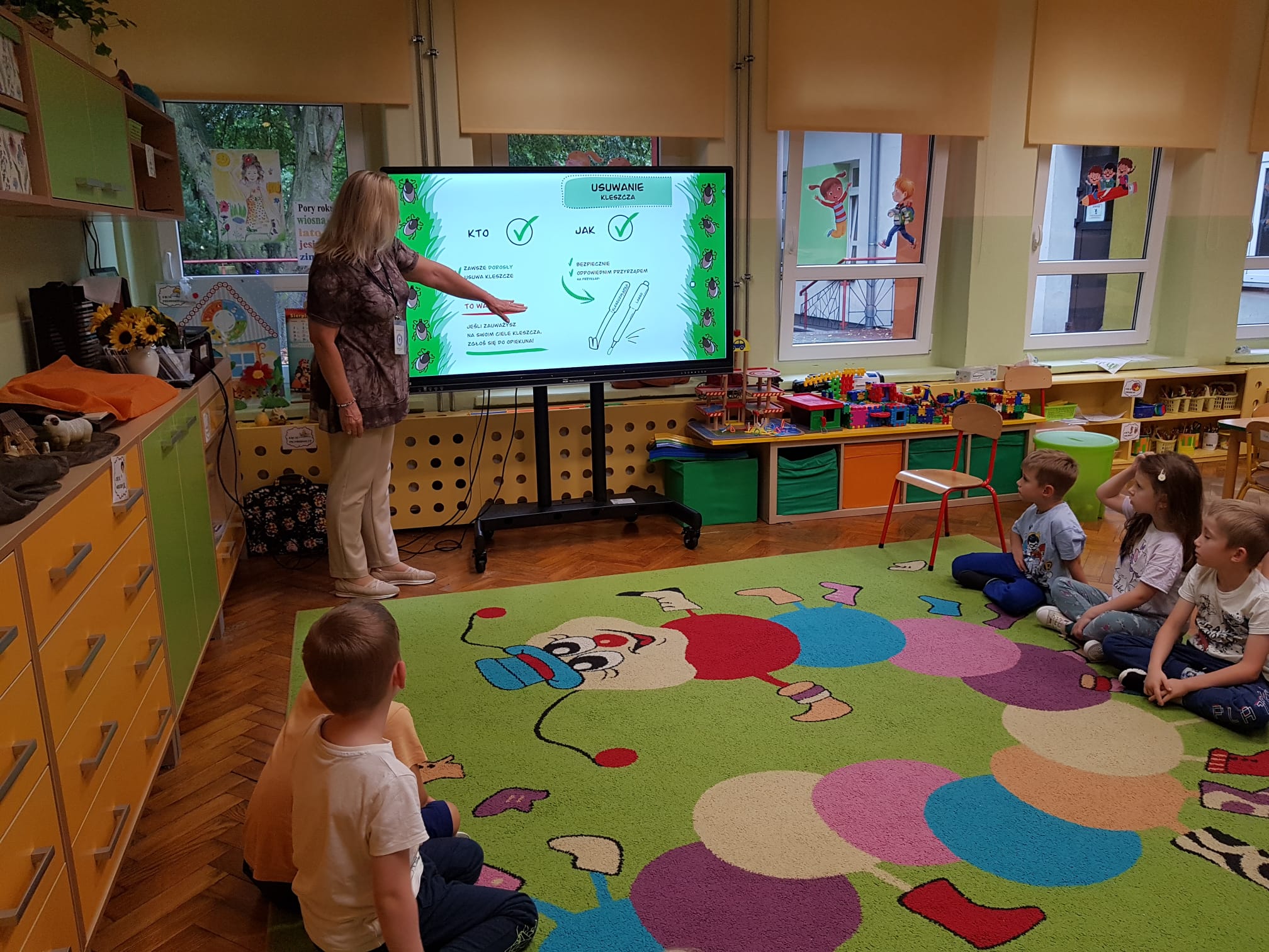 Dzieci na spotkaniu dowiedziały się, że kleszcze są pasożytami żywiącymi się krwią zwierząt i ludzi oraz poznały zasady ochrony przed kleszczami. Przedszkolaki były bardzo zainteresowane zaproponowaną tematyką i chętnie też dzieliły się własnymi doświadczeniami. Wszyscy uczestnicy spotkania otrzymali kolorowanki przygotowane do kampanii. Pozwolą one utrwalić dzieciom materiał i zdobyta wiedza zostanie z nimi dłużej.