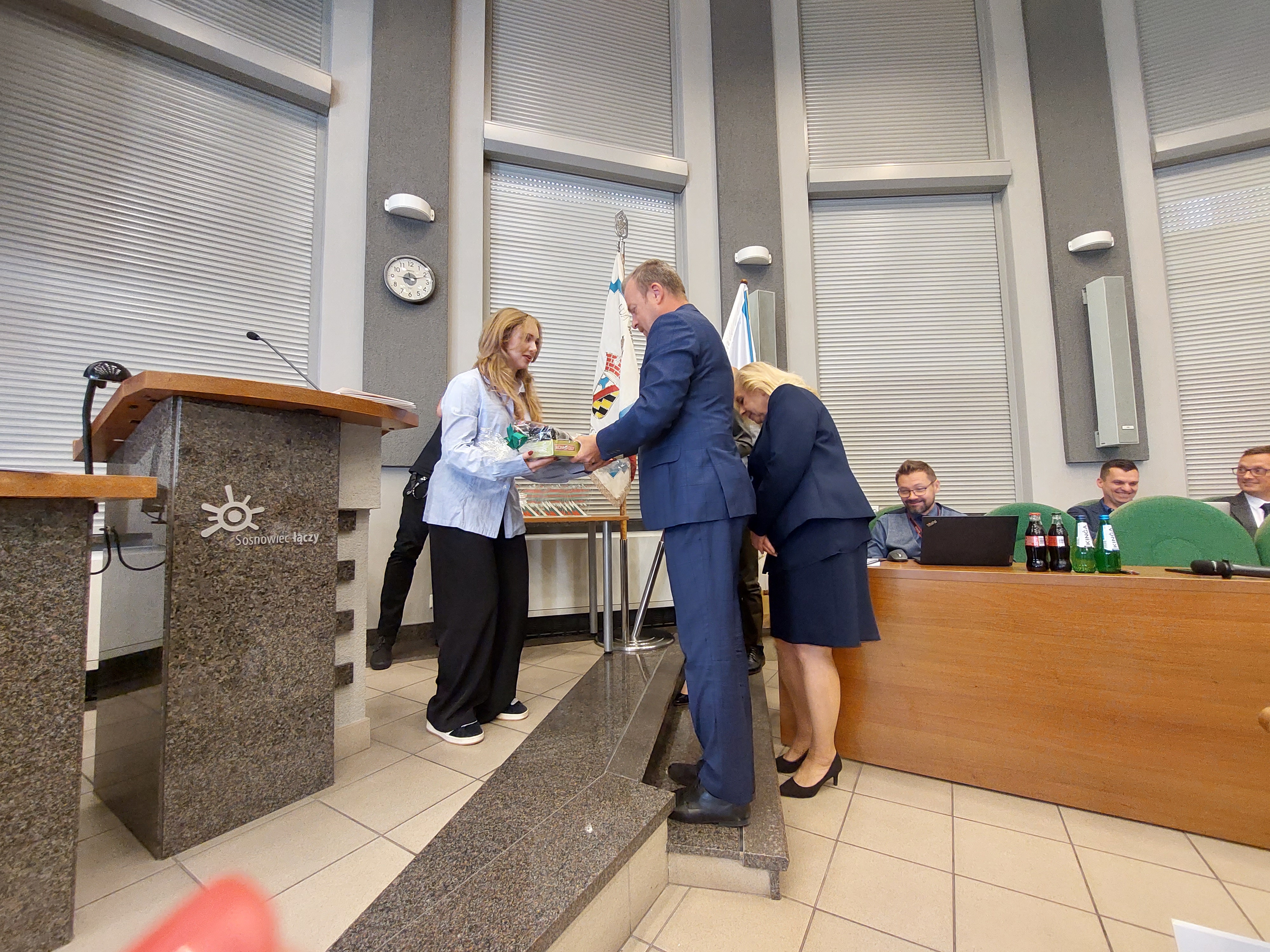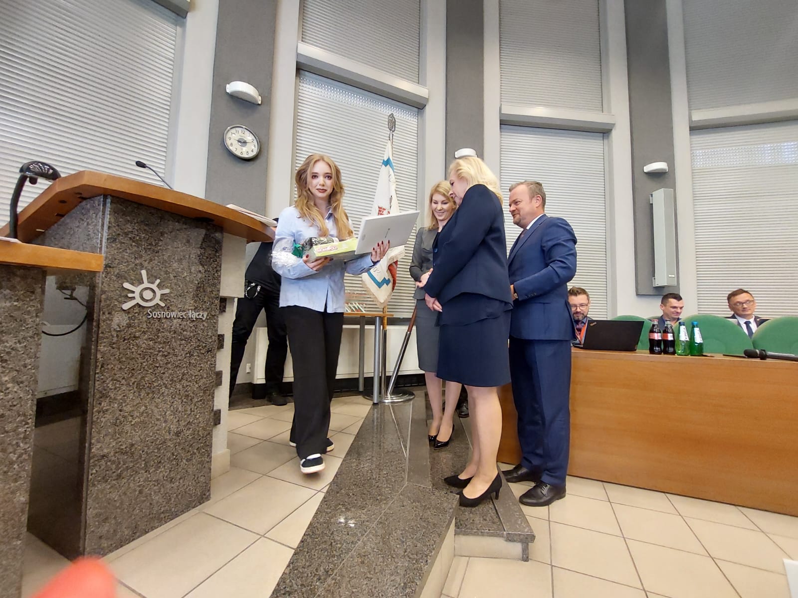 Państwowy Powiatowy Inspektor Sanitarny w Sosnowcu, wczoraj, podczas Sesji Rady Miasta w sali sesyjnej Urzędu Miasta w Sosnowcu uhonorował wyróżnieniem Natalię Jakubczyk. Absolwentka Szkoły Podstawowej nr 6 w Sosnowcu zajęła II miejsce w Ogólnopolskim konkursie pod hasłem „Trzymaj Formę”.