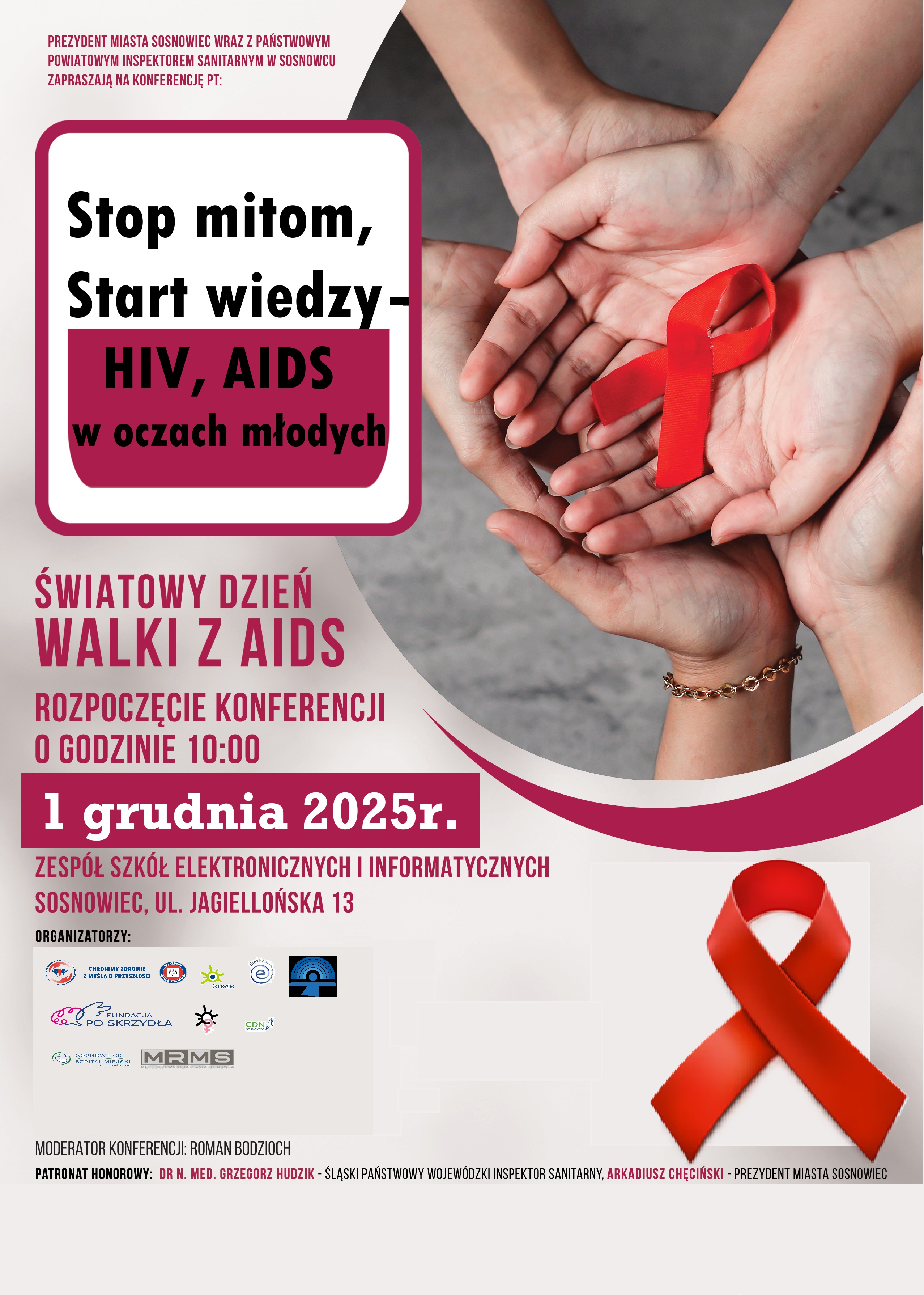 Państwowy Powiatowy Inspektor Sanitarny w Sosnowcu wraz z koalicjantami serdecznie zaprasza sosnowiecką młodzież z klas 1 i 2 szkół ponadpodstawowych wraz z pedagogami. Wydarzenie społeczne zostało zaplanowane na dzień 1 grudnia 2025 roku akcentując w Sosnowcu Światowy Dzień AIDS, mający na celu zwiększenie świadomości na temat HIV/AIDS oraz wsparcie osób żyjących z tą chorobą.