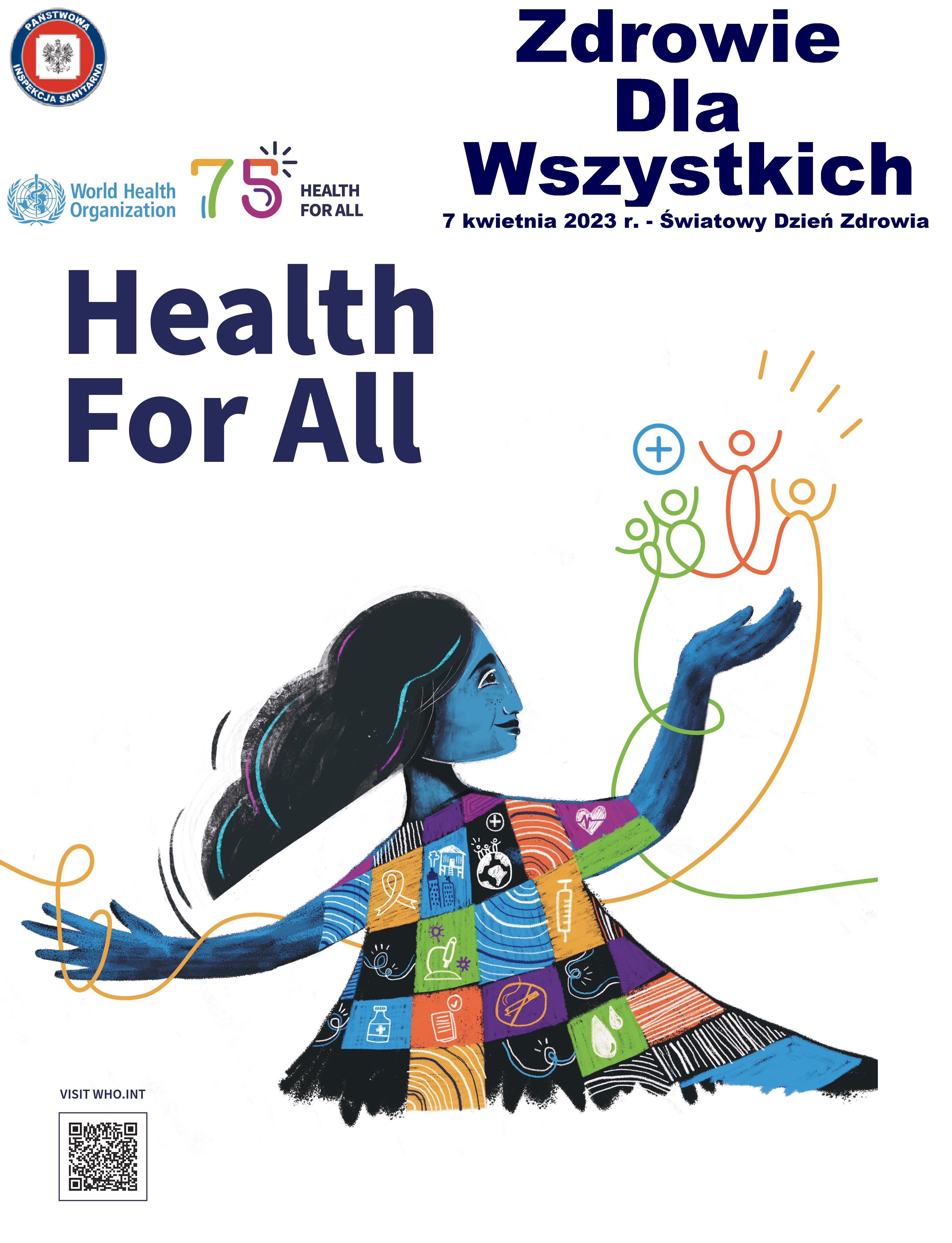 Państwowy Powiatowy Inspektor Sanitarny w Sosnowcu informuje , że Światowy Dzień Zdrowia, który corocznie obchodzony jest 7 kwietnia, w 2023 roku będzie przebiegał pod hasłem ‘’Zdrowie dla wszystkich’’. Tego dnia będzie obchodzona również 75 rocznica powstania Światowej Organizacji Zdrowia .