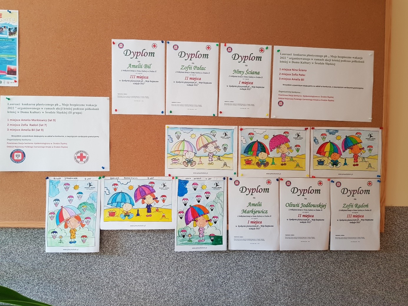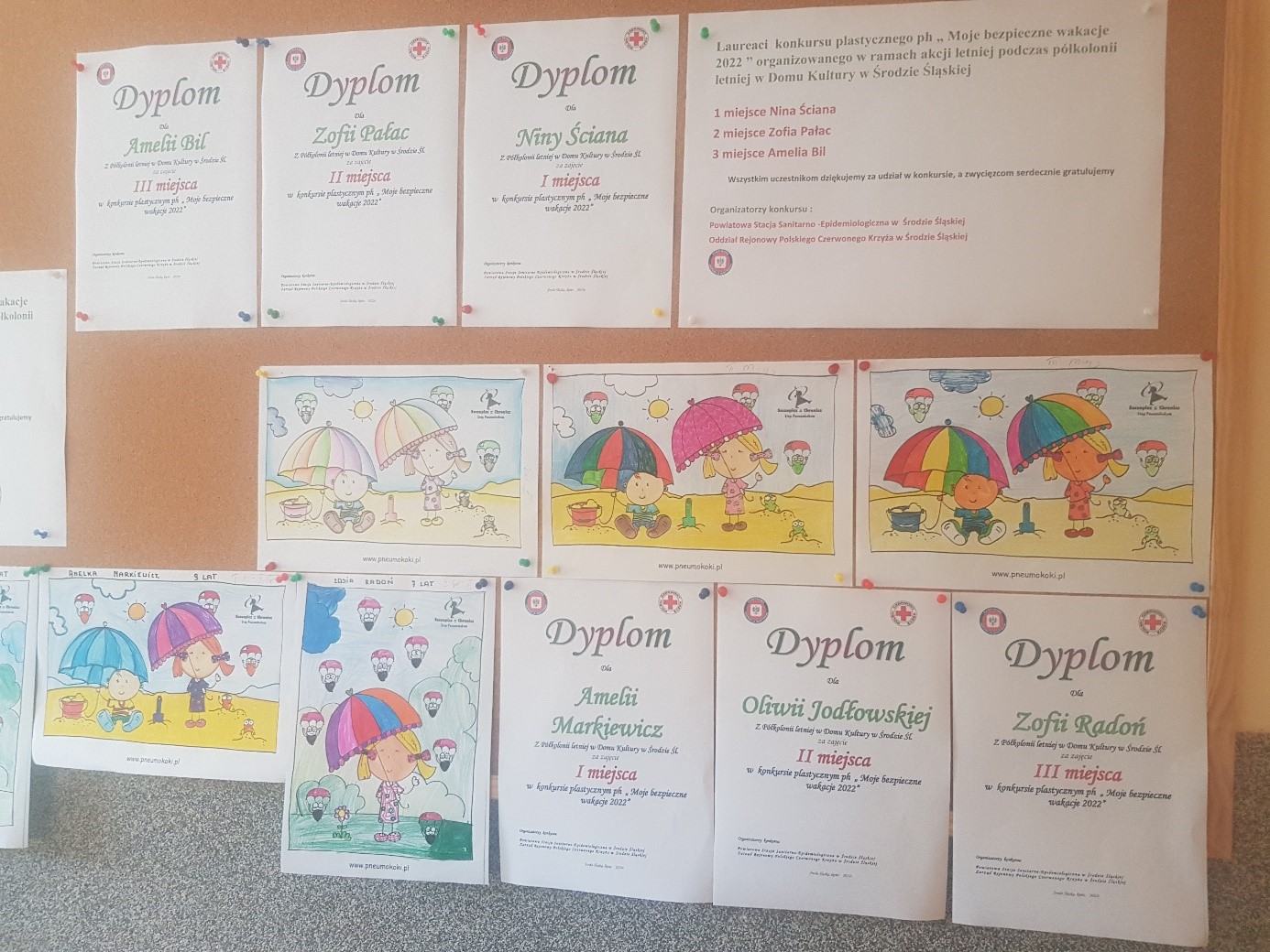 Państwowy Powiatowy Inspektor Sanitarny w Środzie Śląskiej wraz z Kierownikiem Biura Zarządu Rejonowego PCK w Środzie Śląskiej informuje o rozstrzygnięciu 2 konkursów plastycznych ph. „Moje bezpieczne wakacje 2022” w ramach Akcji letniej 2022r.organizowanych dla dzieci przebywających na półkolonii letniej w Domu Kultury w Środzie Śl.