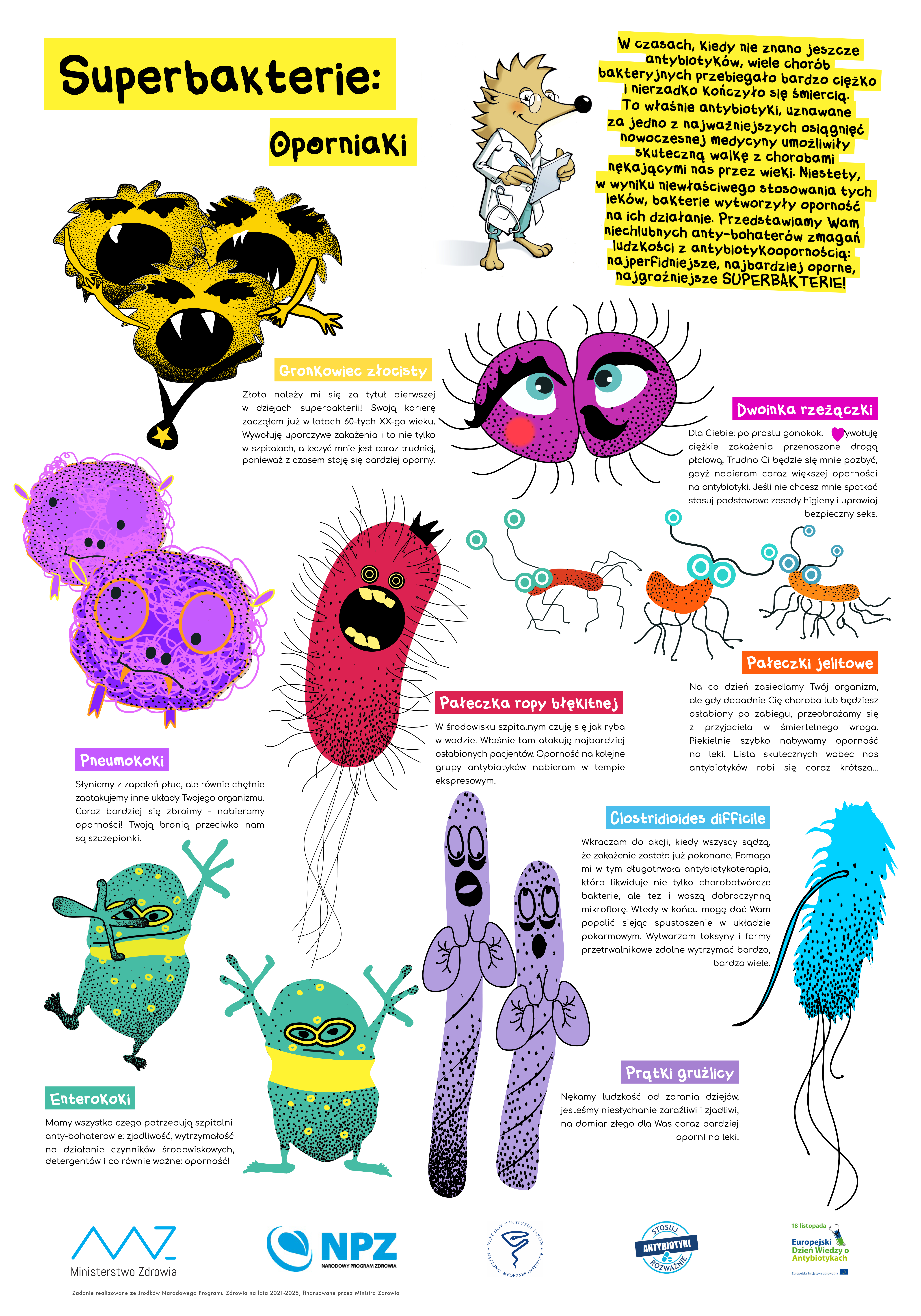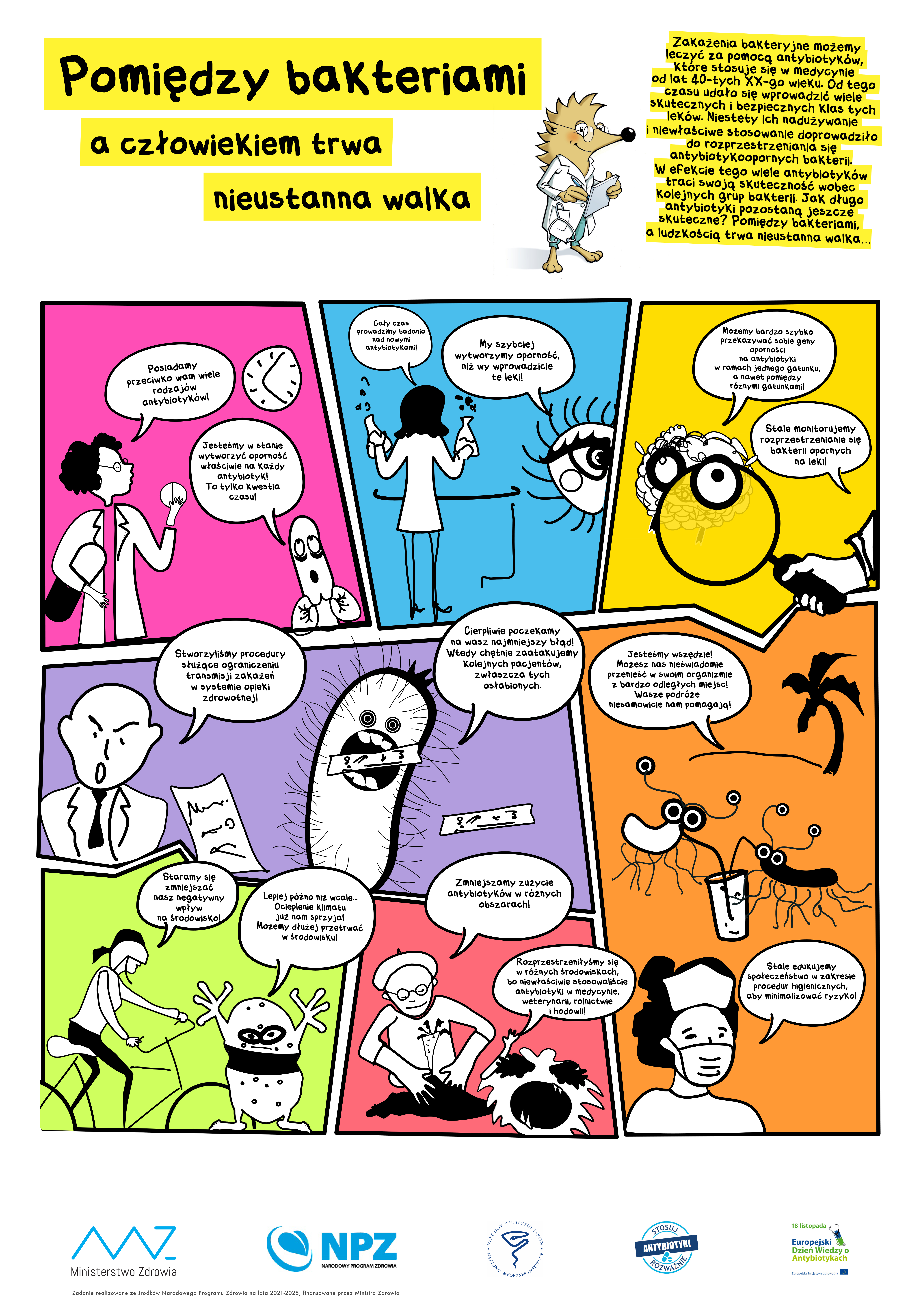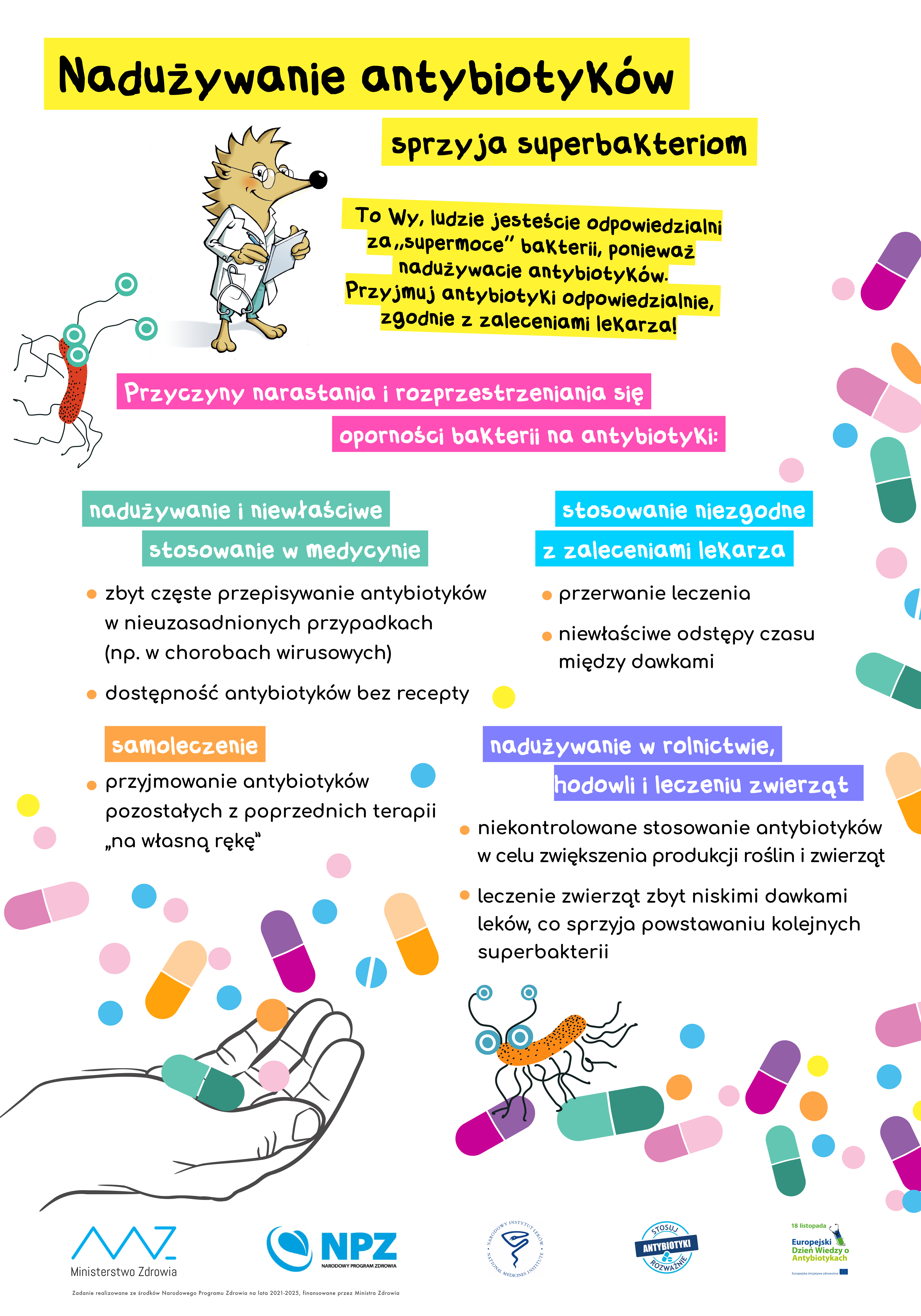 Państwowy Powiatowy Inspektor Sanitarny w Środzie Wielkopolskiej w związku z obchodami w dniu 18 listopada 2022 roku Europejskiego Dnia Wiedzy o Antybiotykach, a w dniach 18-24 listopada 2022 roku Światowego Tygodnia Wiedzy o Antybiotykach zachęca do zapoznania się z materiałami edukacyjnymi znajdującymi się poniżej.