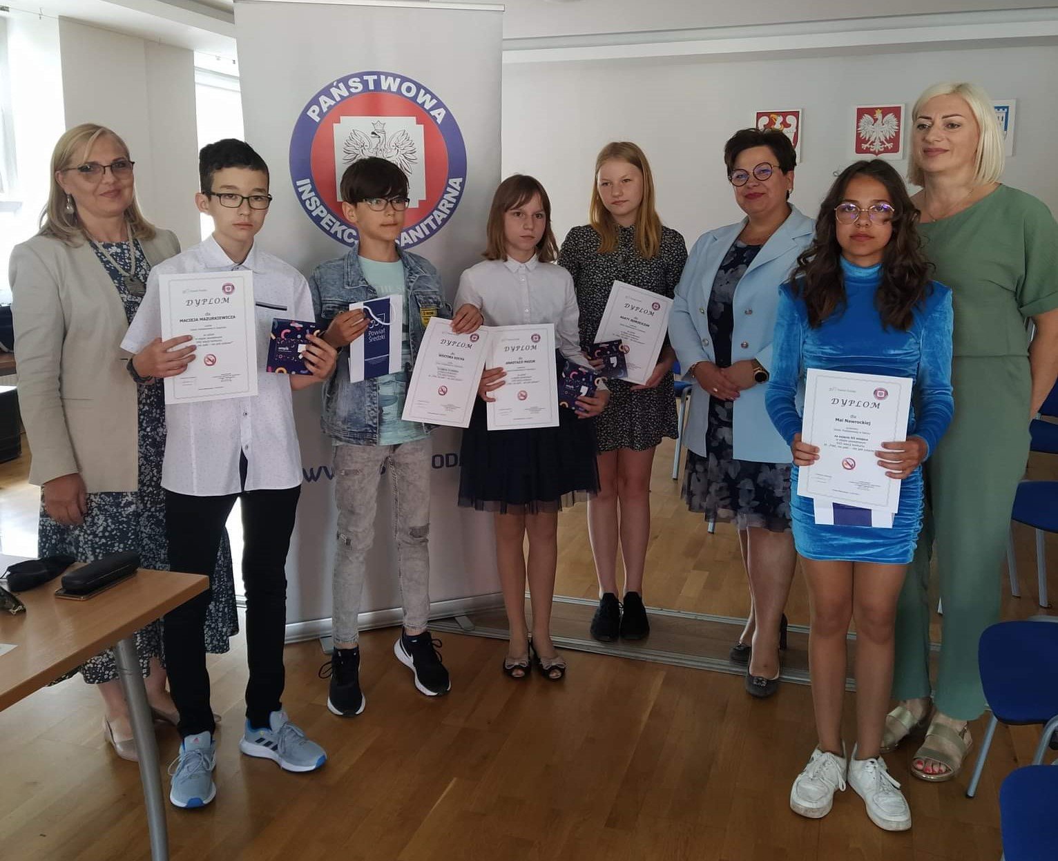 Obecni byli: Barbara Rochowiak Państwowy Powiatowy Inspektor Sanitarny w Środzie Wielkopolskiej oraz Małgorzata Wiśniewska Zabłocka – Vicestarosta Średzki, którzy objęli Patronat nad konkursem i ufundowali upominki dla wszystkich uczestników