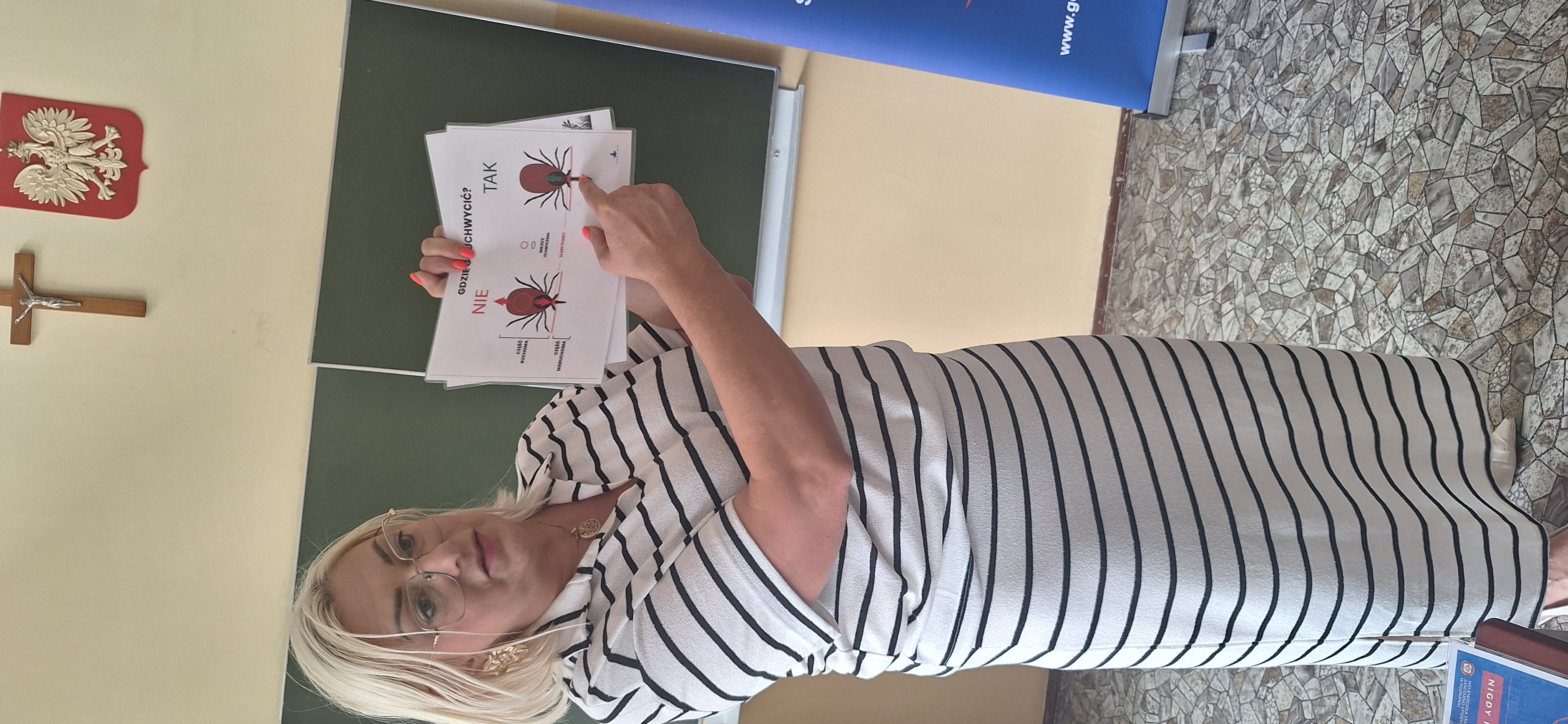 Poruszono zagadnienia związane z profilaktyką chorób odkleszczowych – przedstawiono czym są kleszcze i dlaczego są niebezpieczne, jak się zabezpieczyć przed kleszczami, ze szczególnym naciskiem na stosowanie repelentów oraz jak prawidłowo usunąć kleszcza.