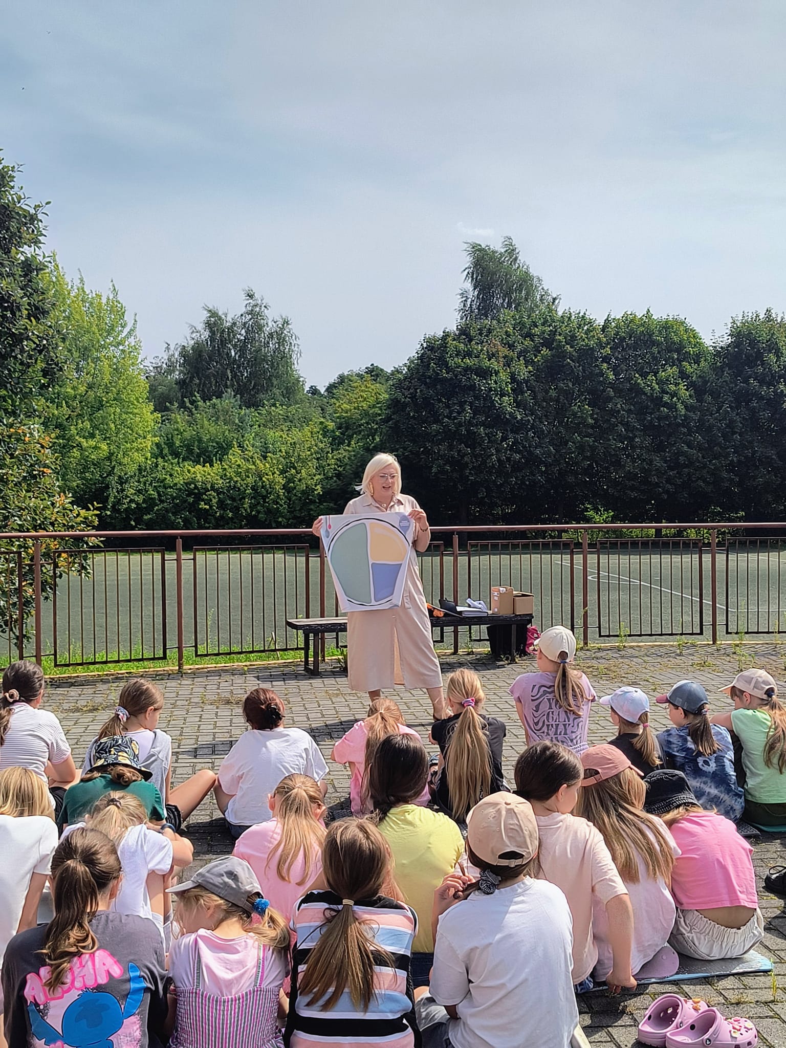 Podczas pogadanki z dziećmi omówiono zasady zdrowego stylu życia, prawidłowego odżywiania, z uwzględnieniem szkodliwego działania napojów energetyzujących oraz konsekwencji braku lub niewystarczającej aktywności fizycznej. Przedstawiono zasady profilaktyki próchnicy z instruktażem prawidłowego mycia zębów oraz higienicznego mycia rąk. Poruszono zagadnienia związane z profilaktyką chorób odkleszczowych – przedstawiono czym są kleszcze i dlaczego są niebezpieczne, jak się zabezpieczyć przed kleszczami, ze szczególnym naciskiem na stosowanie repelentów oraz pokazano jak prawidłowo usunąć kleszcza.