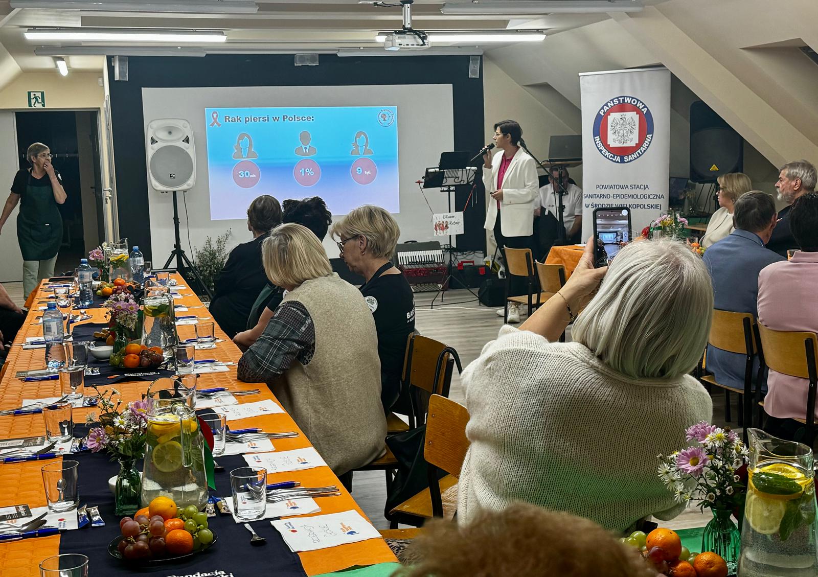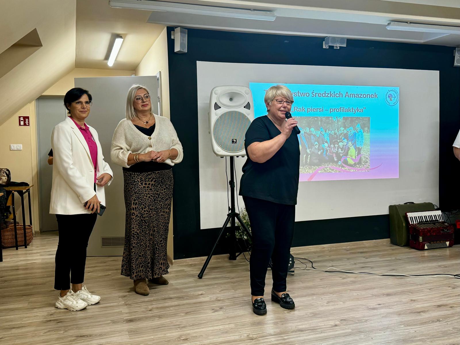 W piątek 08 listopada, w ramach realizacji projektu edukacyjnego w zakresie profilaktyki raka piersi pt.: „Co kryją Twoje piersi?” odbyło się kolejne szkolenie. Tym razem spotkaliśmy się z członkami i sympatykami Koła Gospodyń Wiejskich Babski Kopiec w Nowym Mieście nad Wartą. Zebrani z uwagą wysłuchali wykładu Małgosi - przedstawicielki Towarzystwa Średzkich Amazonek. Przedstawiono dane epidemiologiczne dot. zachorowań na raka piersi, pokreślono wagę i znaczenie profilaktyki – regularnych badań – mammograficznych oraz comiesięcznego samobadania. Omówiono zasady i metody samobadania. W drugiej części pracownik średzkiego Sanepidu przedstawił ideę kampanii pt. „Movember. Profilaktyka to też męska rzecz”. W związku z faktem , że listopad to miesiąc, w którym wiele się mówi na temat profilaktyki nowotworów układu moczowo płciowego, szczególnie raka prostaty i raka jąder, przypomniano, ze te choroby, choć poważne, wykryte we wczesnym stadium są w wielu wypadkach w pełni wyleczalne. Dlatego tak ważne jest, by panowie regularnie wykonywali badania profilaktyczne oraz dbali o zdrowy tryb życia.