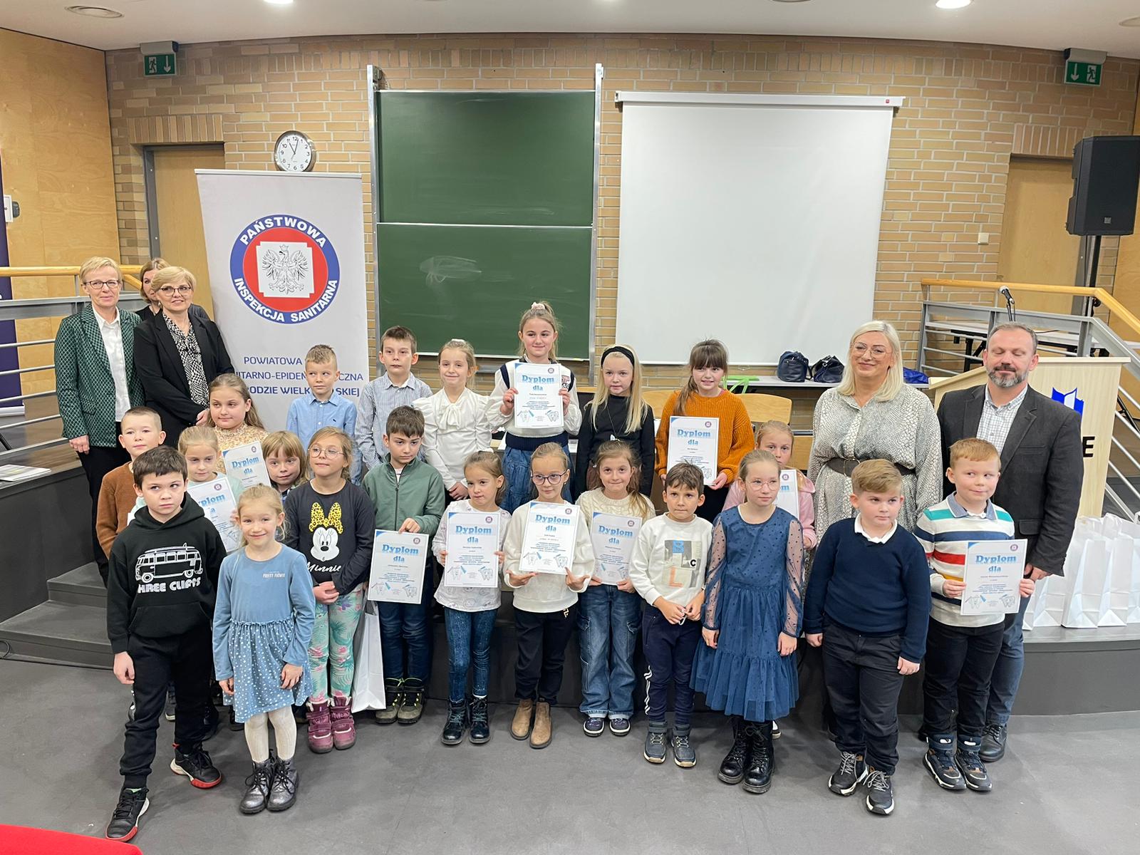 Wczoraj 19.12.2023 r. w Zespole Szkół Akademickich w Środzie Wielkopolskiej wręczono dyplomy i upominki uczestnikom etapu powiatowego konkursu wojewódzkiego pt. „Mój zębowy niezbędnik” dla uczniów z klas 1, 2 i 3 szkół podstawowych, realizowanego w ramach projektu edukacyjnego „Mam zdrowe zęby”.