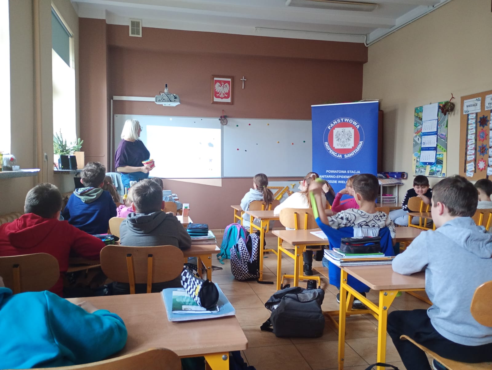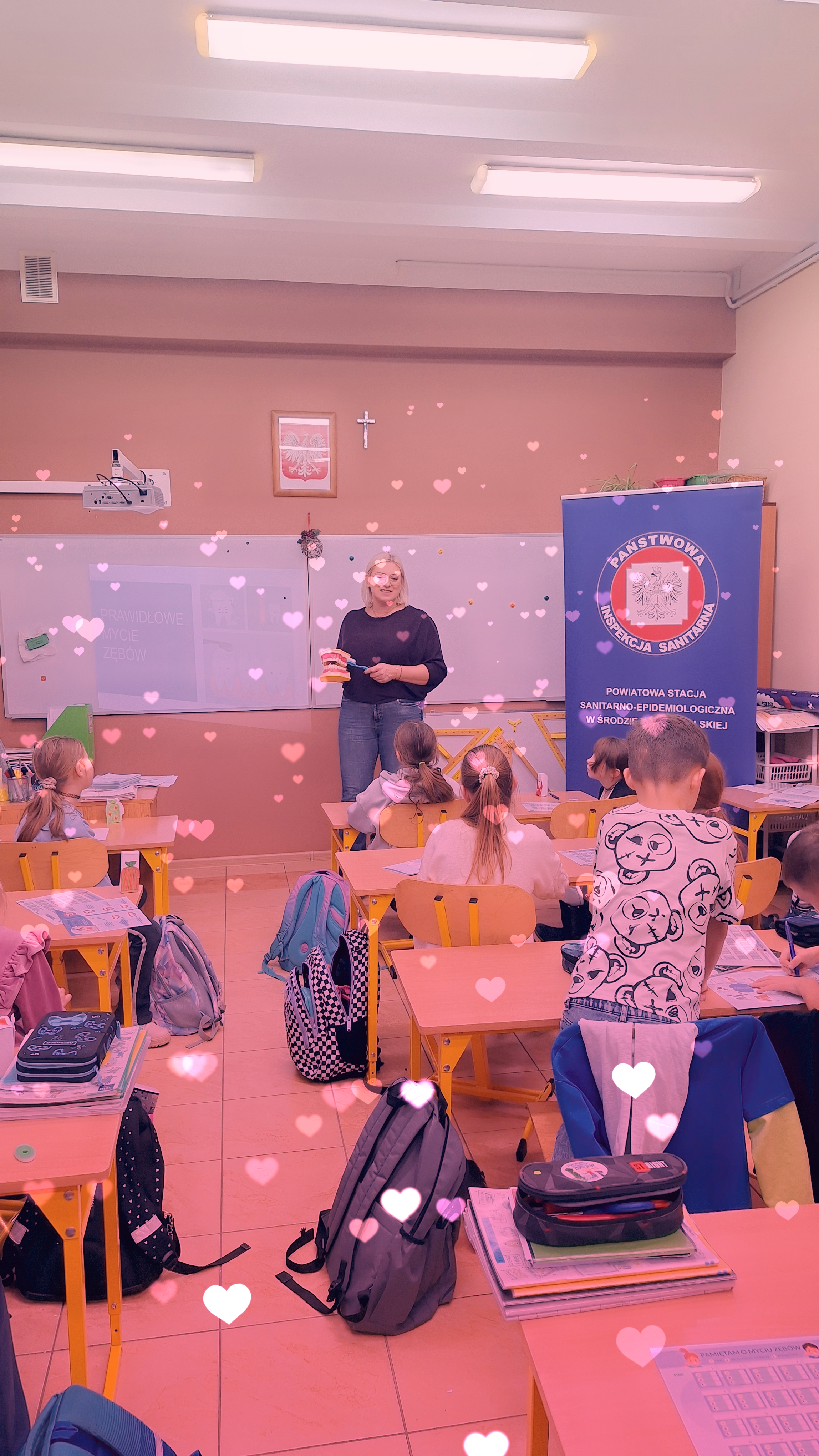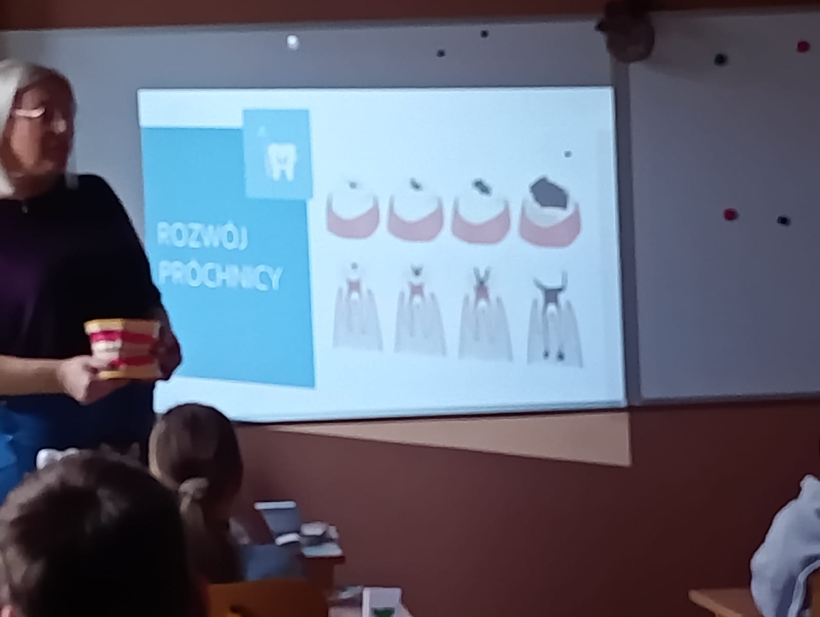 16 grudnia uczniowie klasy III b Szkoły Podstawowej Nr 2 z Oddziałami Integracyjnymi w Środzie Wielkopolskiej uczestniczyli w pogadance, która została przeprowadzona w ramach realizacji wojewódzkiego projektu "Mam zdrowe zęby".