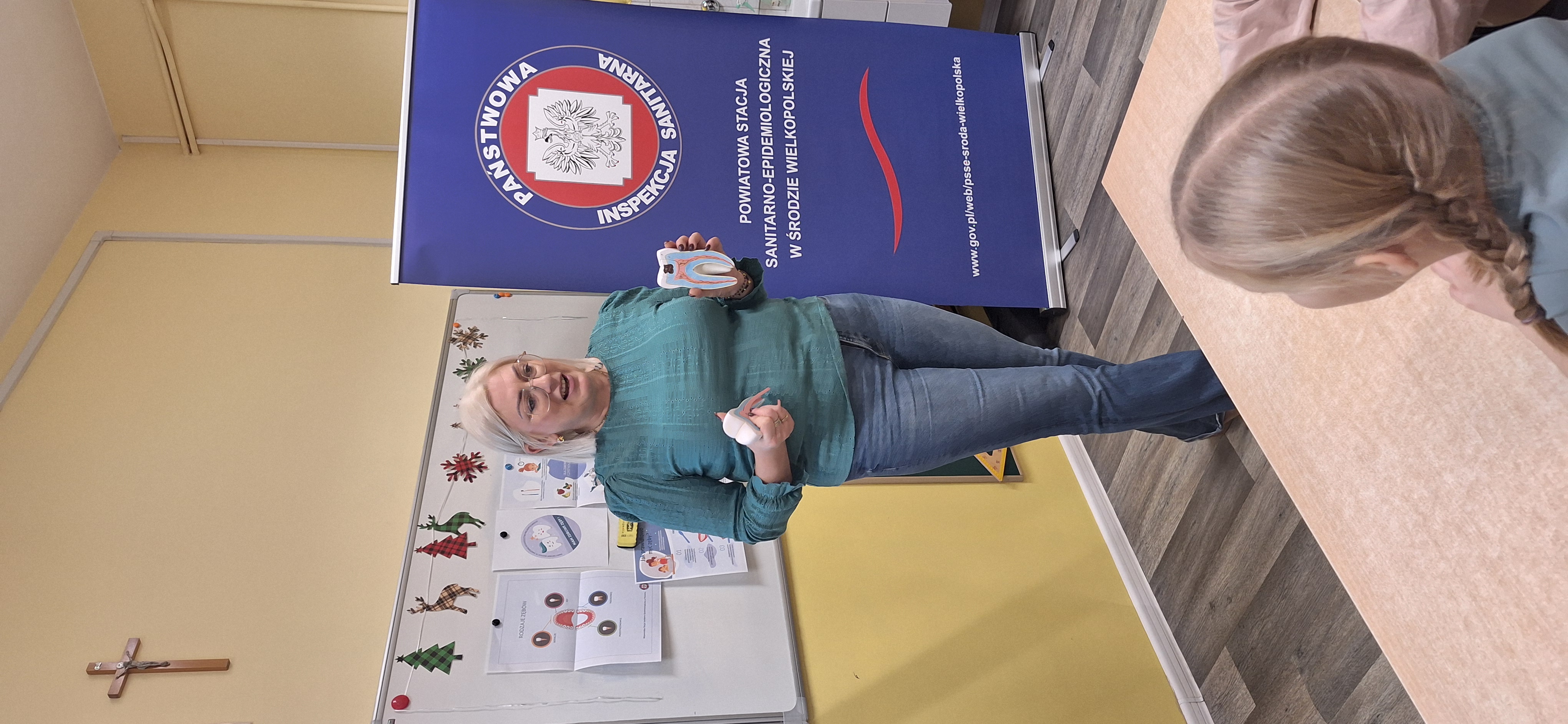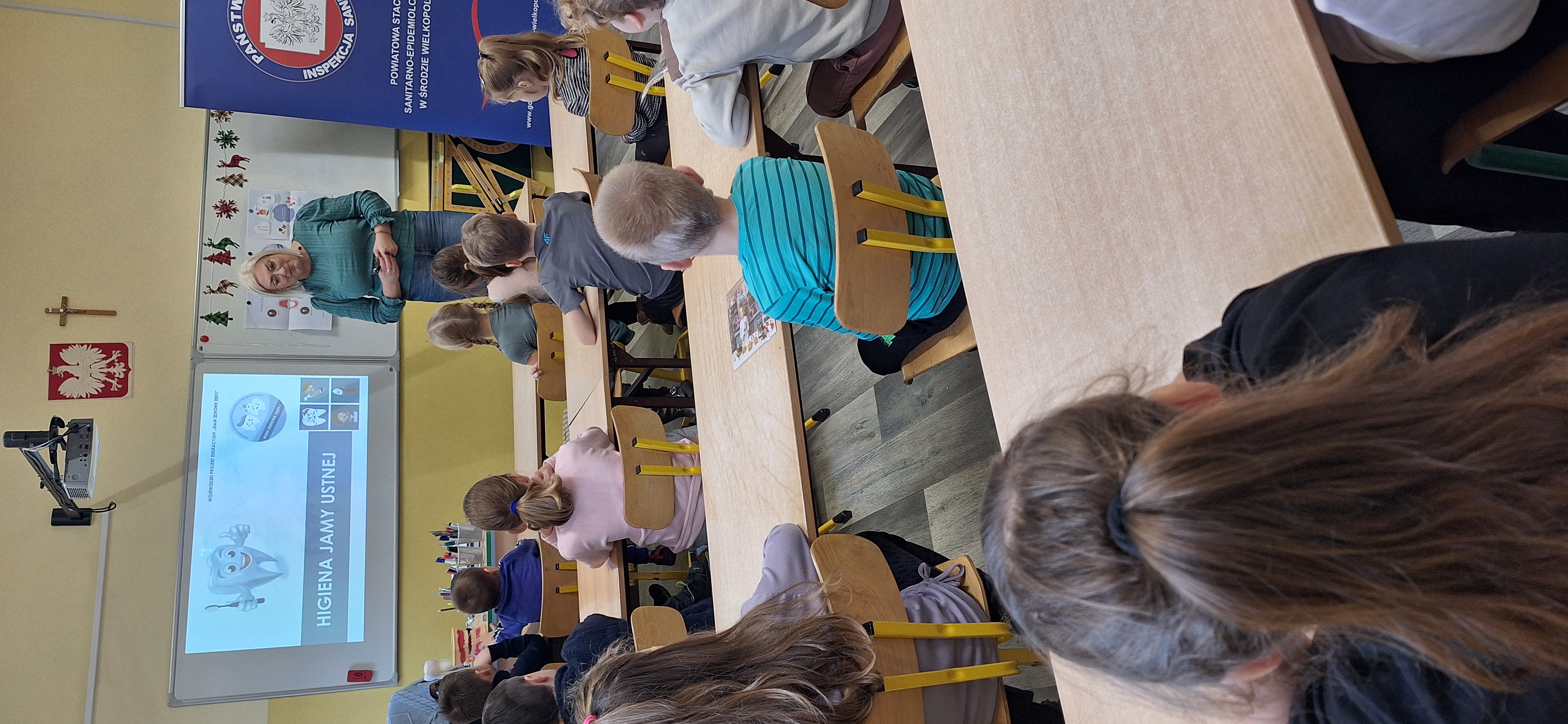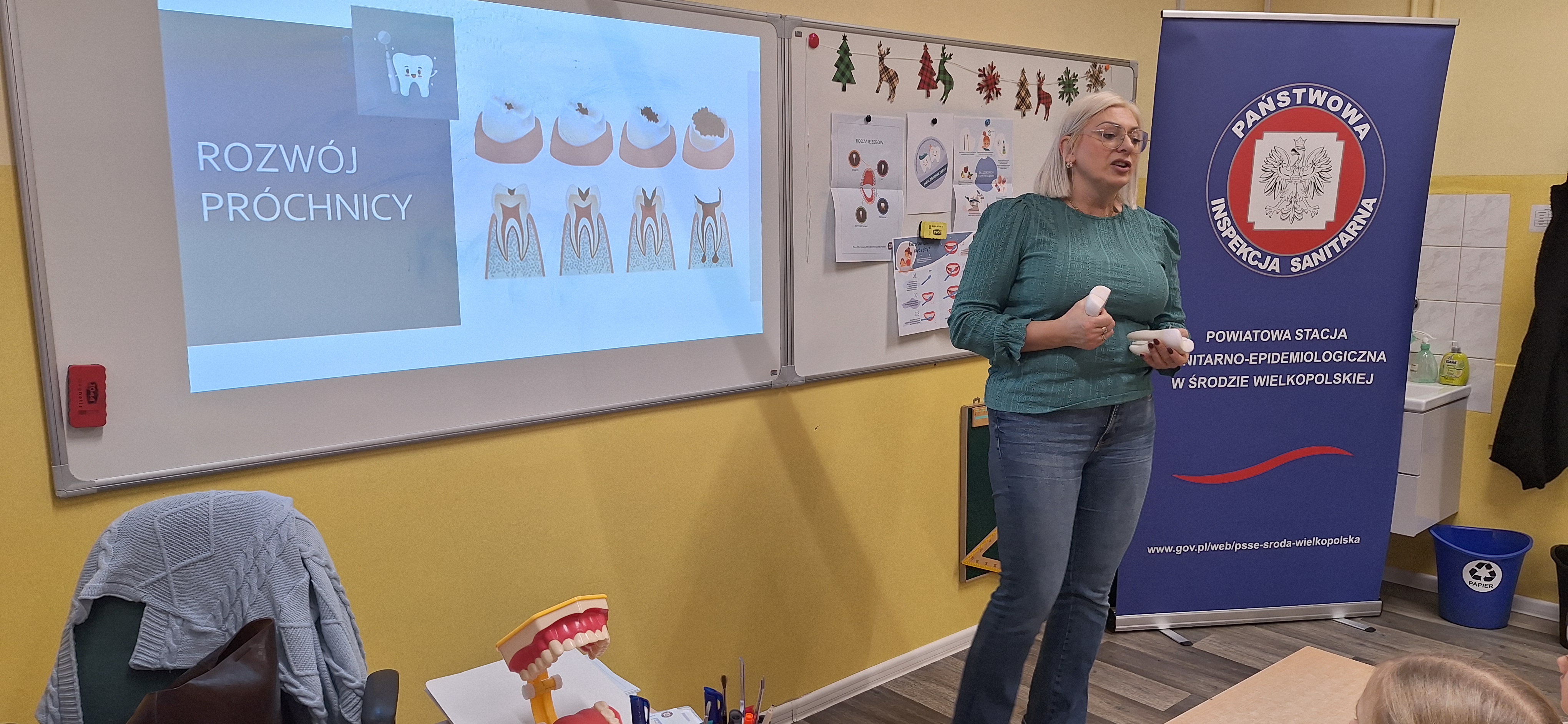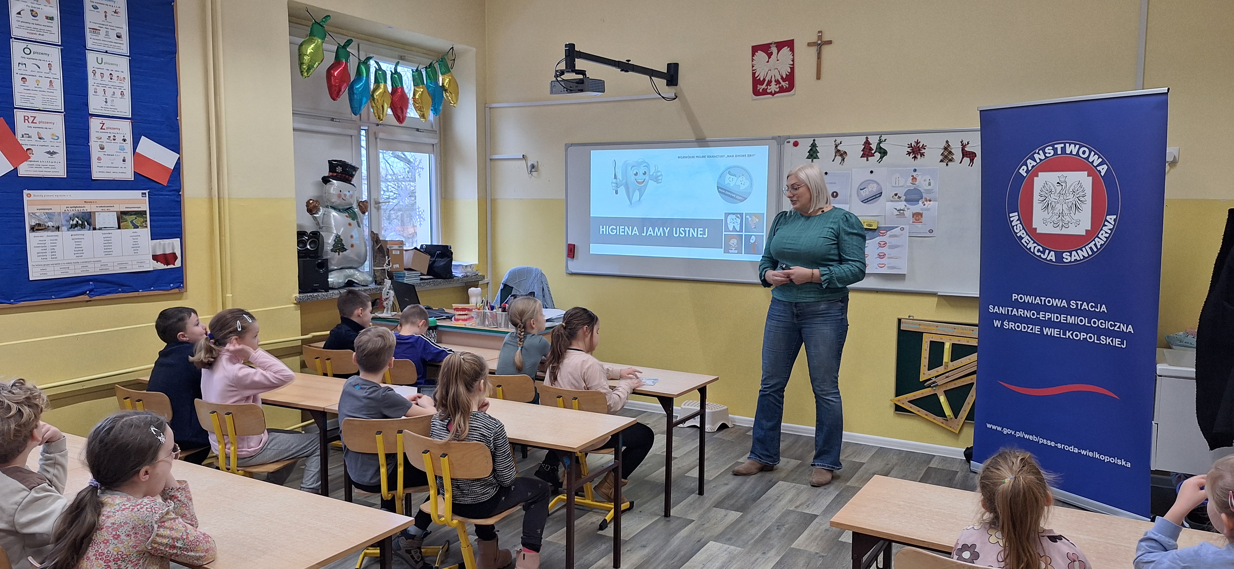 We wtorek 17 grudnia pracownik pionu oświaty i promocji zdrowia Powiatowej Stacji Sanitarno-Epidemiologicznej w Środzie Wielkopolskiej przeprowadził kolejną prelekcje w ramach realizacji projektu edukacyjnego „Mam zdrowe zęby”. W ramach tego projektu odbywają się zajęcia edukacyjne z instruktażem prawidłowego szczotkowania zębów, dla uczniów klas I -III szkół podstawowych.