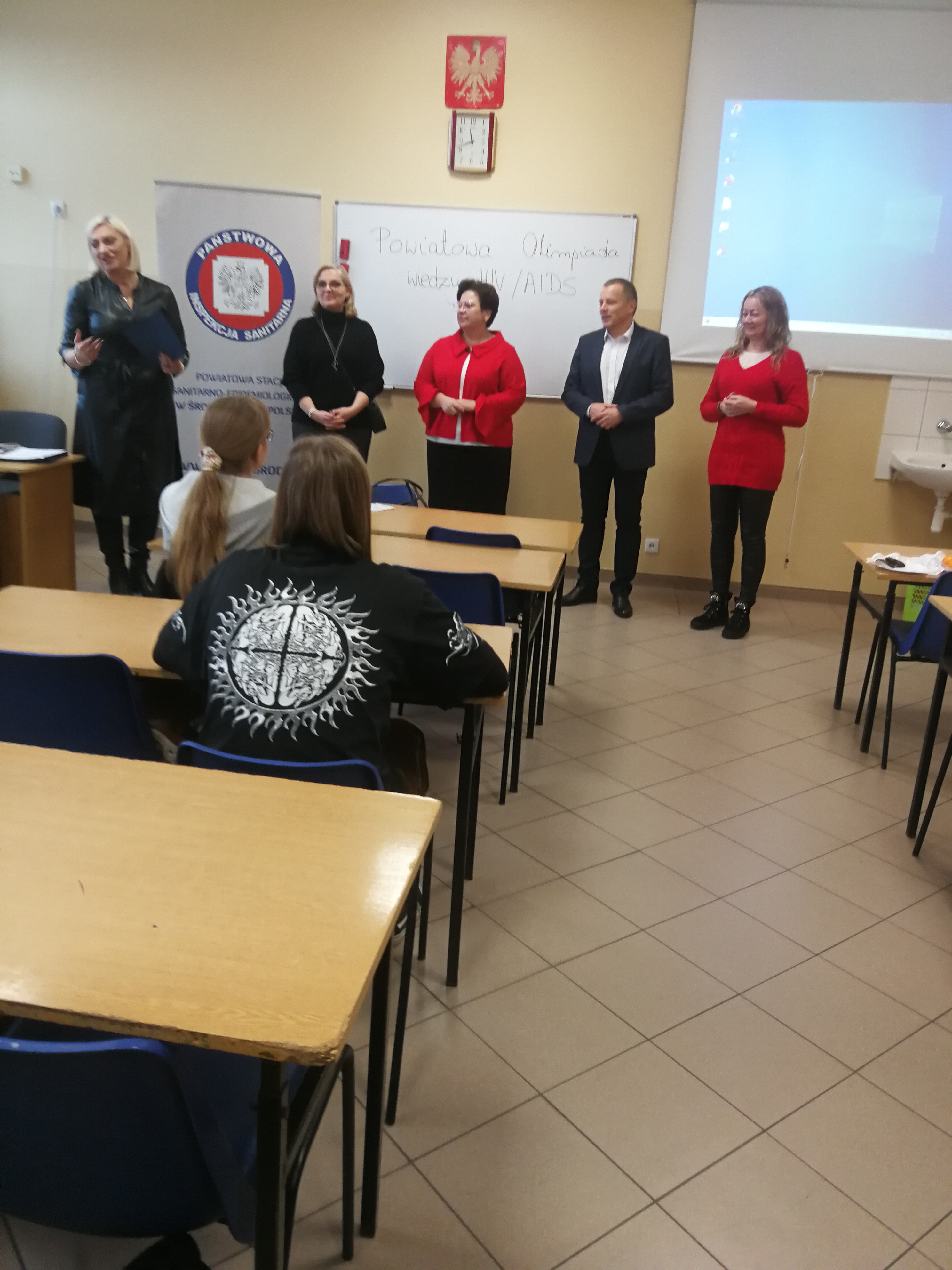 W Centrum Kształcenia Zawodowego i Ustawicznego w Środzie Wielkopolskiej 13 grudnia br. pion Oświaty Zdrowotnej i Promocji Zdrowia Powiatowej Stacji Sanitarno – Epidemiologicznej w Środzie Wielkopolskiej zorganizował Obchody Światowego dnia AIDS. W obchodach uczestniczyli: Barbara Rochowiak - Państwowy Powiatowy Inspektor Sanitarny w Środzie Wielkoposlkiej, Ernest Iwańczuk – Starosta Średzki, Małgorzata Wiśniewska–Zabłocka – Vice Starosta Średzki, Beata Kuropka – Zastępca dyrektora – Centrum Kształcenia Zawodowego i Ustawicznego w Środzie Wielkopolskiej, Marek Witczak ze Starostwa Powiatowego w Środzie Wielkopolskiej, uczestnicy XIV Powiatowej Olimpiady Wiedzy o HIV i AIDS, laureaci etapu powiatowego wojewódzkiego konkursu na fotografię pod tytułem „Nie daj szansy AIDS” oraz nauczyciele i młodzież. Podsumowania całorocznych działań z zakresu profilaktyki HIV i AIDS prowadzonych przez Powiatową Stację Sanitarno-Epidemiologiczną w Środzie Wielkopolskiej dokonała Anna Mendyka pracownik ds. oświaty zdrowotnej i promocji zdrowia PSSE.