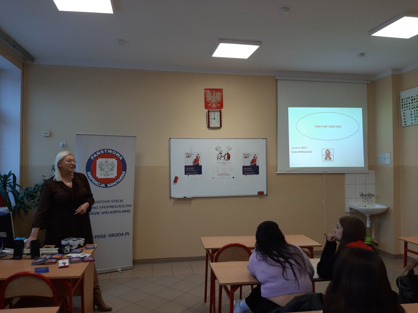 Dziś przypada Światowy Dzień AIDS to doskonała okazja do promowania bezpiecznych i odpowiedzialnych zachowań w aspekcie zakażeń HIV oraz innych chorób przenoszonych drogą płciową. Pracownik pionu oświaty zdrowotnej i promocji zdrowia PSSE przeprowadził pogadanki dla młodzieży – uczniów dwóch klas: klasy IV Technikum z Zespołu Szkół Rolniczych w Środzie Wielkopolskiej oraz klasy II Liceum Ogólnokształcącego o profilu policyjnym z Centrum Kształcenia Zawodowego i Ustawicznego w Środzie Wielkopolskiej. Omówiono drogi i przebieg zakażenia HIV, przedstawiono sytuacje ryzykowne, testy w kierunku HIV oraz działalność punktów konsultacyjno-diagnostycznych. Omawiając zachowania ryzykowne przedstawiono temat działania środków psychotropowych i nowych środków zastępczych na układ nerwowy. Na koniec młodzież mogła przymierzyć alkogogle i NARKOgogle. Te ćwiczenia miały uświadomić młodzieży jak działają narkotyki i alkohol poprzez symulacje wielu skutków używania narkotyków lub przedawkowania leków na receptę, w tym: dezorientacja, zaburzenia percepcji, zawroty głowy, brak zniekształcenia obrazu, problemy z pamięcią, poczuciem euforii, koncentracji.