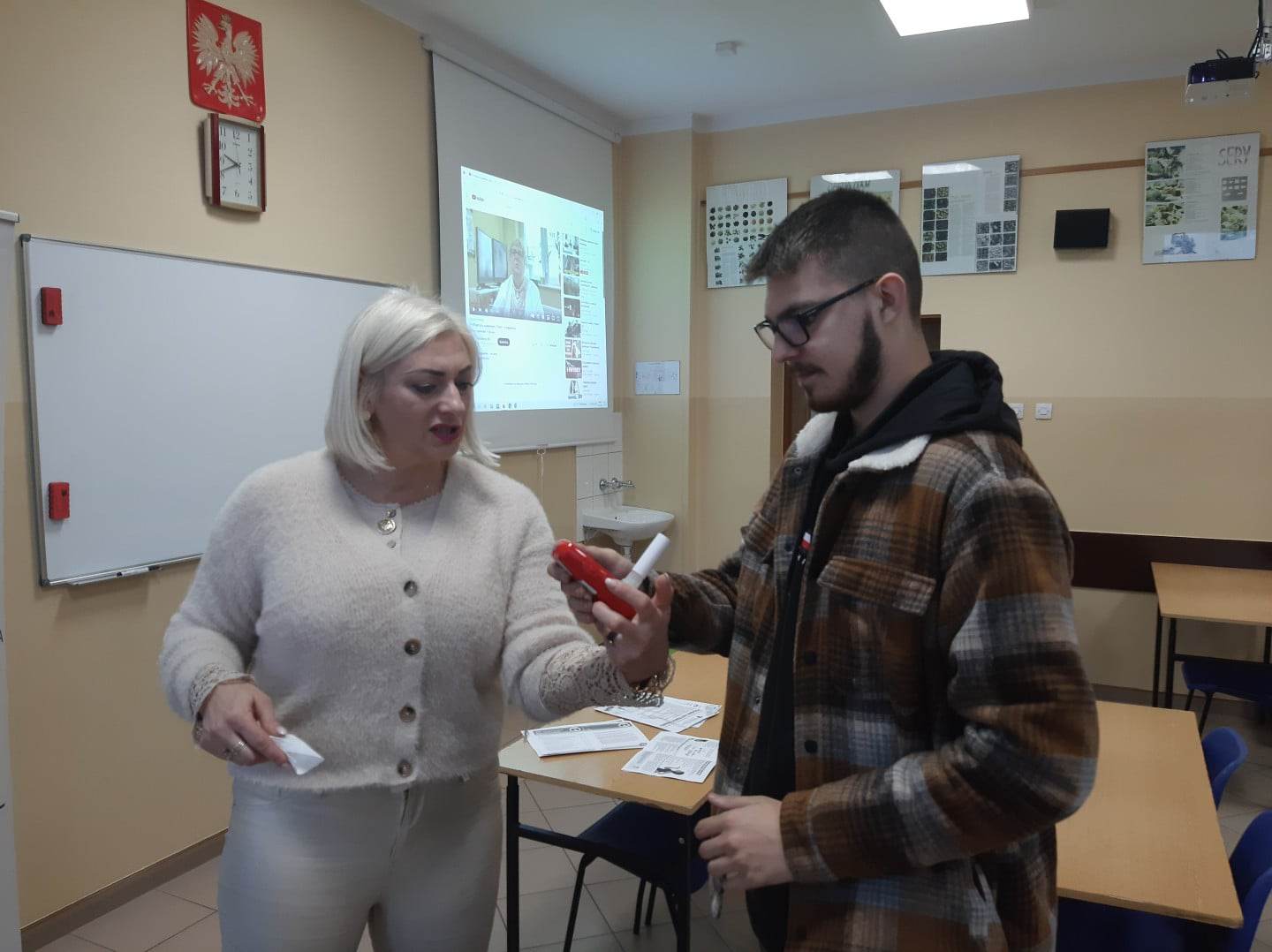 W dniu 16.11.2022 r. odbyły się pogadanki dla uczniów dwóch klas (klasy IV Technikum i klasy IV Liceum) w Centrum Kształcenia Zawodowego i Ustawicznego w Środzie Wielkopolskiej oraz 6 klas w Liceum Ogólnokształcącego Nr 1 – Akademickie w Środzie Wielkopolskiej. Podczas pogadanki przedstawiono historię palenia tytoniu, skład dymu tytoniowego i jego wpływ na organizm ludzki, czym jest bierne palenie, jak przebiega sposób uzależniania się od nikotyny, omówiono prawdy i mity o e-papierosach. Chętni uczniowie mogli zbadać zawartość tlenku węgla (CO) w wydychanym powietrzu przy pomocy smokerlyzera.