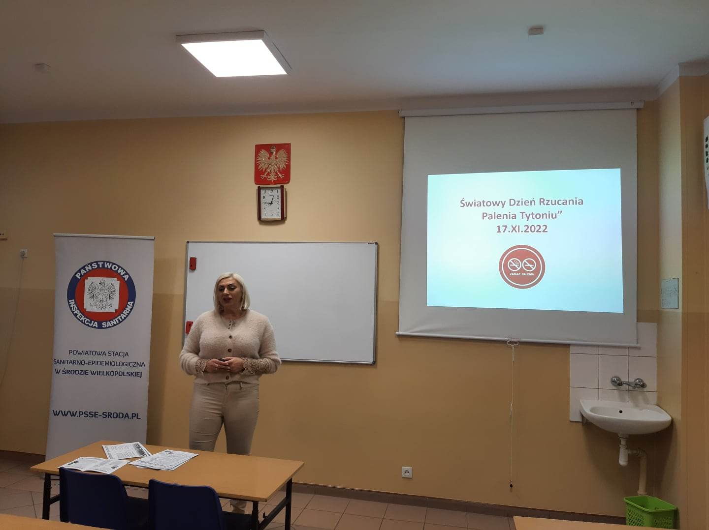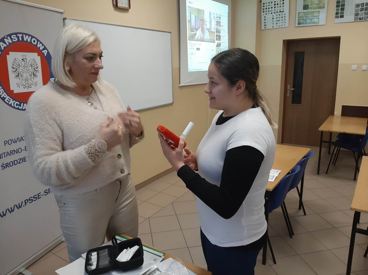 pracownik Powiatowej Stacji Sanitarno - Epidemiologicznej w Środzie Wielkopolskiej przeprowadził pogadanki dla uczniów szkół ponadpodstawowych.