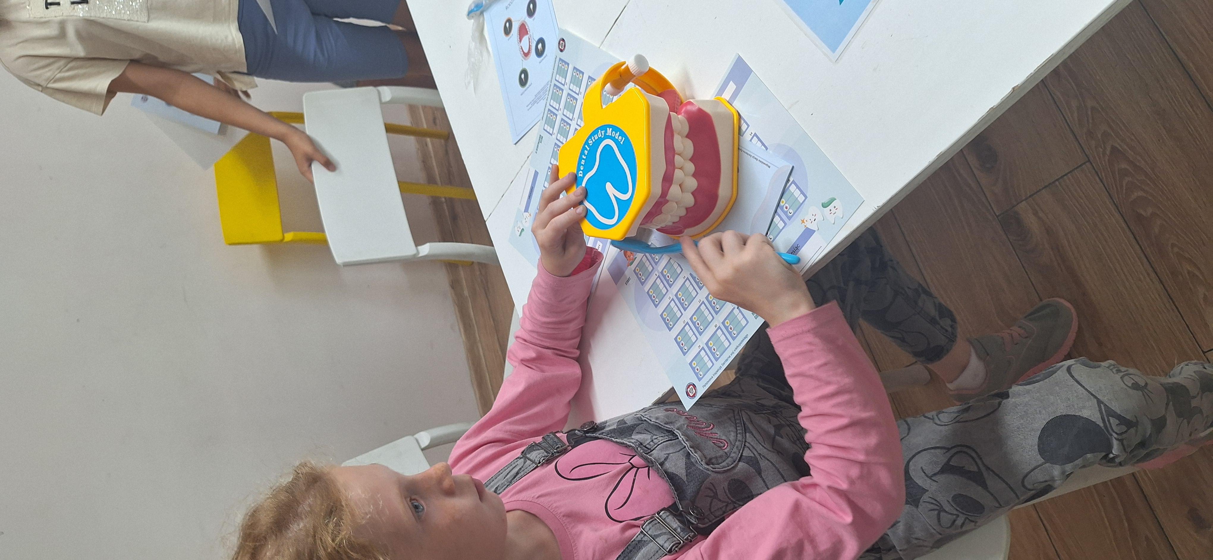 W trakcie spotkania omówiono prawidłową technikę mycia zębów, którą dzieci mogły przećwiczyć na modelu szczęki. Dzieci poznały wpływ popularnych produktów spożywczych na zdrowie zębów, a także zasady dbania o zęby, takie jak mycie ich 2 razy dziennie przez 2 minuty, regularne wizyty u dentysty.