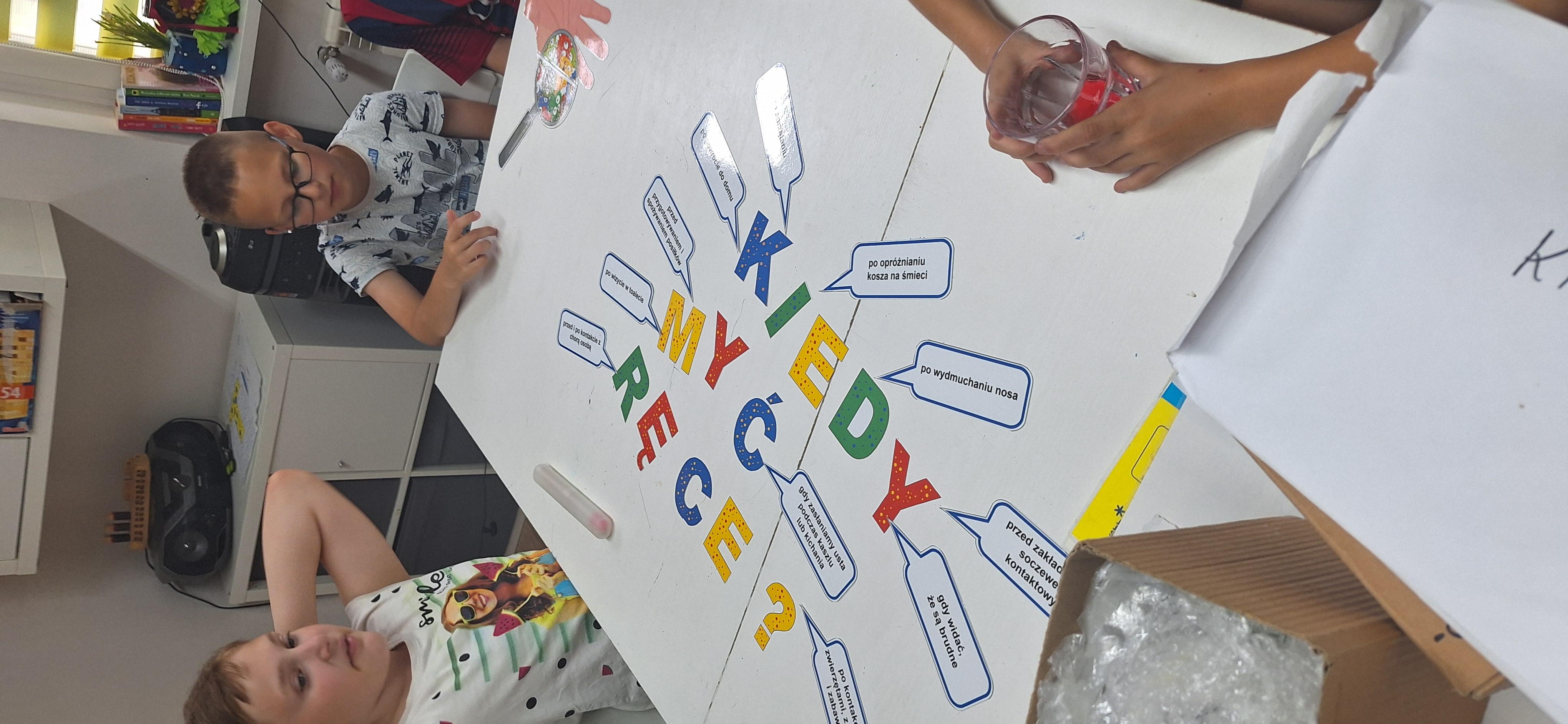 W przedostatnim tygodniu czerwca gościliśmy w Placówce Wsparcia Dziennego KOMPAS w Środzie Wielkopolskiej. Podczas pogadanki na temat na temat zdrowego stylu życia i higieny osobistej połączoną z warsztatami. Tematem zajęć była higiena osobista. Pracownik OZiPZ przedstawił prawidłową technikę mycia rąk, ciekawostki na temat higieny rąk. Rozmawiano o tym jak niezwykle ważną rolę dla naszego zdrowia odgrywa prosta czynność, jaką jest dokładne i częste mycie rąk. To na rękach właśnie przenoszone są różne chorobotwórcze mikroorganizmy – wirusy, grzyby, bakterie, pierwotniaki. Mycie rąk szczególnie po wyjściu z toalety. Przed jedzeniem, po powrocie do domu, redukuje o ponad 40% zachorowania na biegunkę i o 25% infekcje dróg oddechowych. Przeprowadzono z dziećmi doświadczenie z uciekającym pieprzem, które dokładnie obrazuje działanie mydła na bakterie.