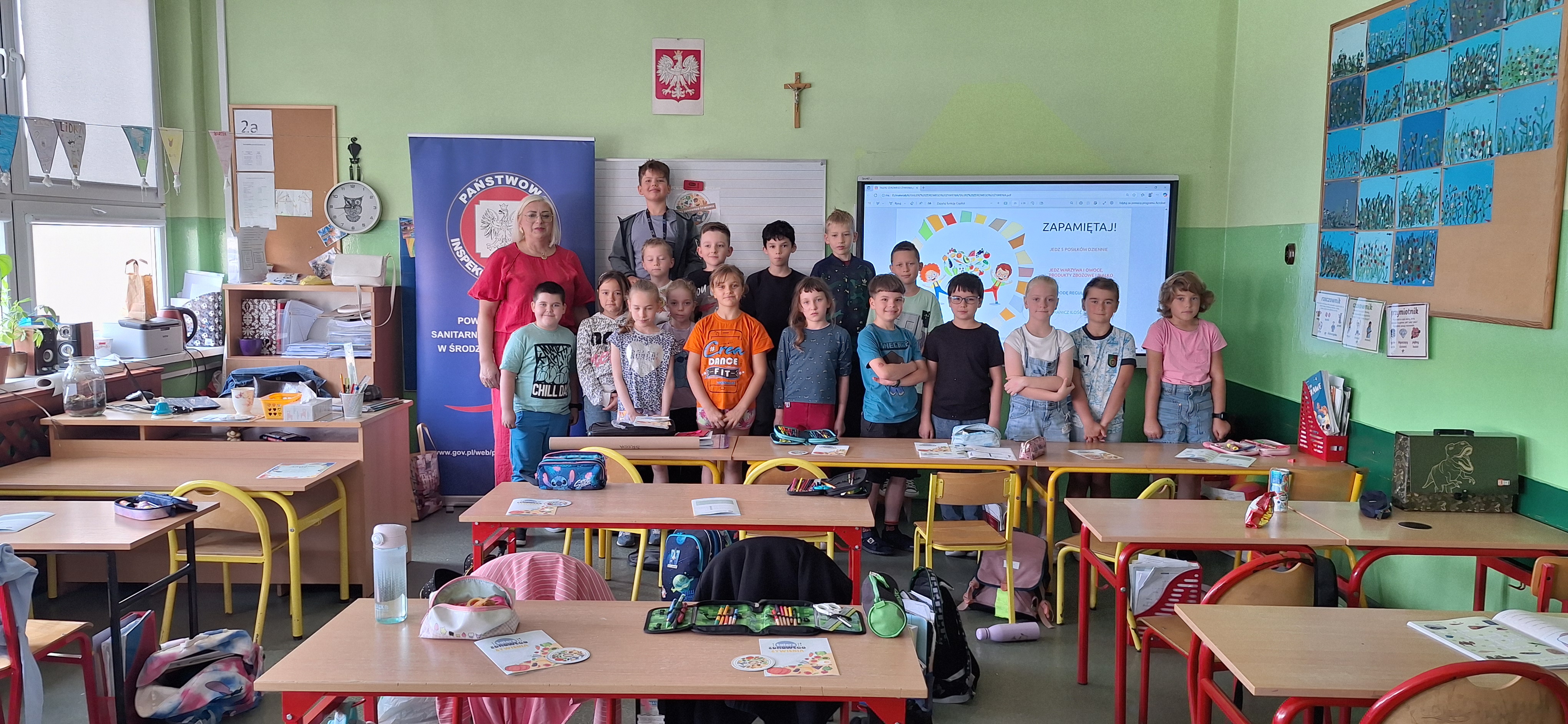 W wtorek 17.06.2025 r. pracownik pionu oświaty i promocji zdrowia Powiatowej Stacji Sanitarno-Epidemiologicznej w Środzie Wielkopolskiej przeprowadził już ostatnią w tym roku szkolnym prelekcje dla uczniowie z klasy IIa Szkoły Podstawowej nr 3 im. Ignacego Łukasiewicza w Środzie Wielkopolskiej. Spotkanie odbyło się w ramach realizacji I edycji projektu edukacyjnego „Talerz zdrowego żywienia!” adresowanego do uczniów klas I -III szkół podstawowych oraz dzieci przedszkolnych. Omówiono zasady prawidłowego odżywiania, ćwiczono umiejętność odczytywania schematu „Talerz zdrowego żywienia” oraz odróżnienia produktów zdrowych dla organizmu od niekorzystnych. Dzieci aktywnie brały udział w zajęciach poprzez udzielanie odpowiedzi, uczestnictwo w quizie. Wszystkie dzieci otrzymały broszurkę edukacyjną „Talerz zdrowego żywienia”, magnes z logo projektu a cała grupa dyplom za udział w zajęciach na temat prawidłowego odżywiania.