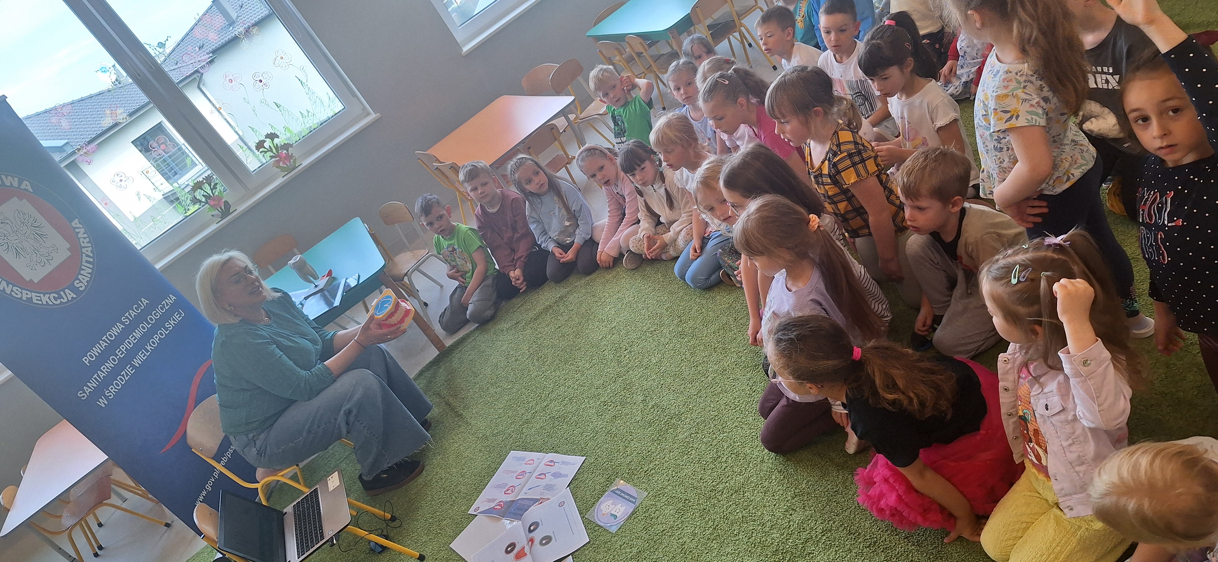 We worek 28 maja pracownik pionu oświaty i promocji zdrowia Powiatowej Stacji Sanitarno-Epidemiologicznej w Środzie Wielkopolskiej przeprowadził kolejną prelekcje w ramach realizacji III edycji projektu edukacyjnego „Mam zdrowe zęby”. W ramach tego projektu odbywają się zajęcia edukacyjne z instruktażem prawidłowego szczotkowania zębów, dla uczniów klas I -III szkół podstawowych oraz dzieci w wieku 5 i 6 lat w Przedszkolach.