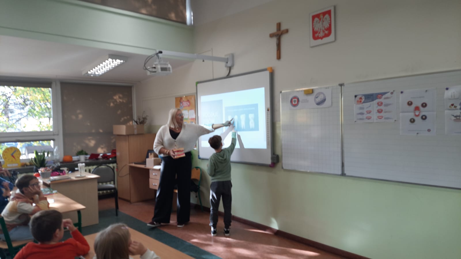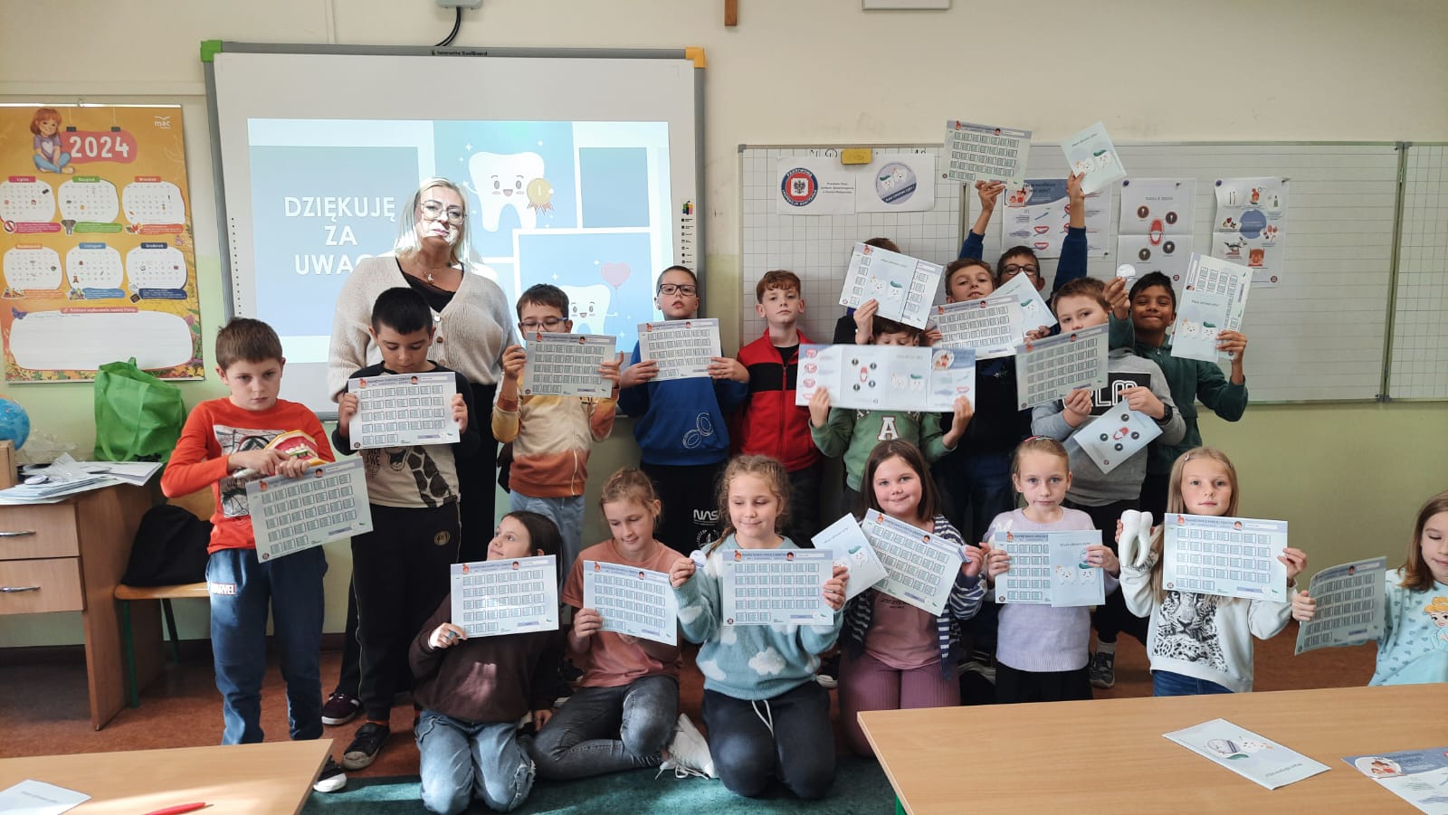 Tym razem odwiedziliśmy uczniów klasy III ze Szkoły Podstawowej w Nowym Mieście n/Wartą. Podczas spotkania edukacyjnego uczniowie dowiedzieli się ile i jakie rodzaje zębów posiadają, jakie są funkcje zębów. Poznali zasady profilaktyki próchnicy oraz szkolili czynność prawidłowego szczotkowania zębów. Uczniowie aktywnie brali udział w zajęciach, zgodnie z instruktażem ćwiczyli prawidłowe szczotkowanie zębów oraz wykazali się dużą wiedzą w quizie. Wszystkie dzieci otrzymały broszurkę edukacyjną „Mam zdrowe zęby”, magnes z logo projektu oraz kalendarz szczotkowania zębów