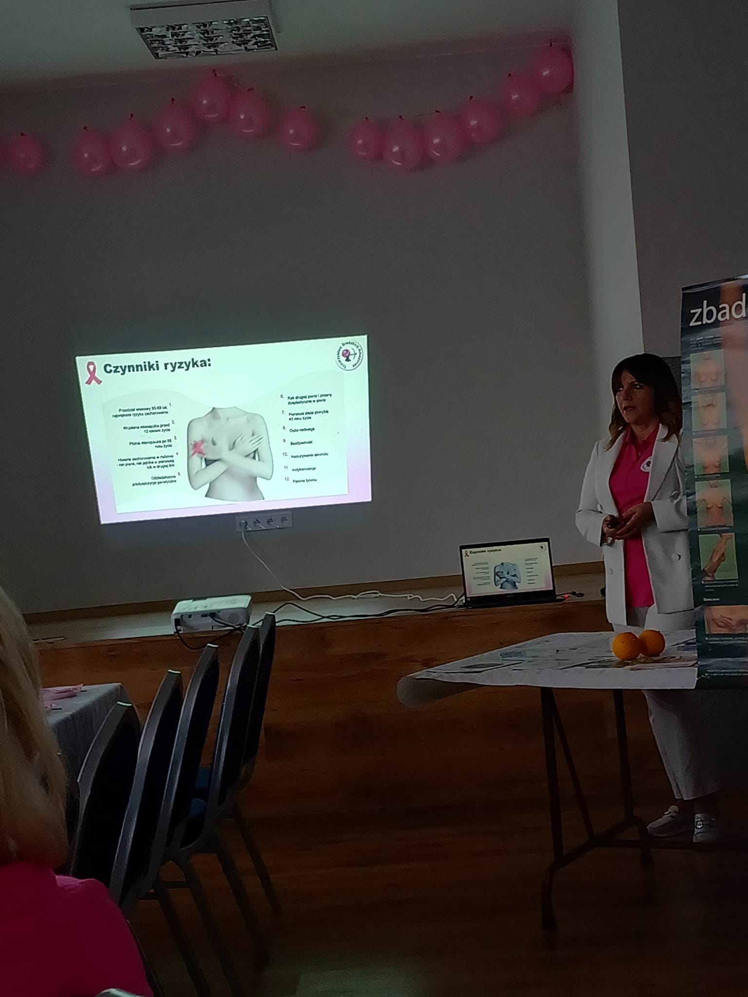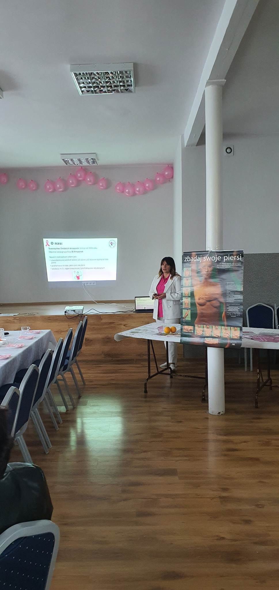 Państwowy Powiatowy Inspektor Sanitarny w Środzie Wielkopolskiej informuje, że w dniu 05.05.2023 r. we współpracy z Towarzystwem Średzkich Amazonek przeprowadzono szkolenie dotyczącą profilaktyki raka piersi, w ramach realizacji projektu edukacyjnego pt. „Co kryją Twoje piersi?”. Podczas szkolenia omówiono epidemiologię występowania nowotworów w Polsce, patogenezę, czynniki ryzyka i objawy raka piesi, profilaktykę raka piersi. W drugiej części odbył się pokaz nauki samobadania piersi z użyciem fantomu. Prelekcję wygłoszono dla społeczności lokalnej KGW Miąskowo.