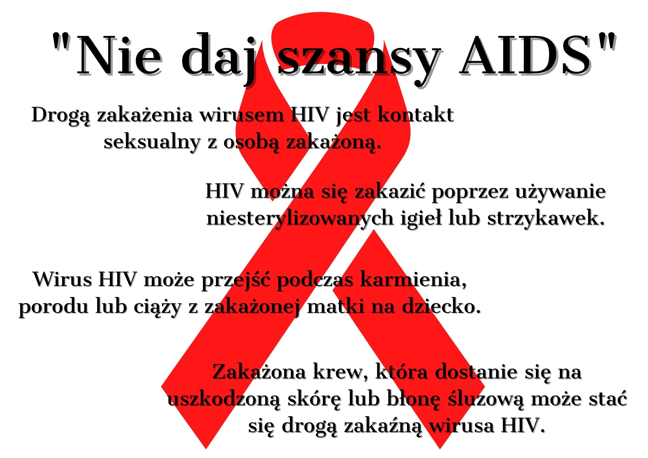 Zadanie konkursowe polegało na wykonaniu przez uczniów infografiki pod hasłem „Nie daj szansy AIDS”, która propagowałaby wiedzę o zakażeniach HIV i chorobach przenoszonych drogą płciową.