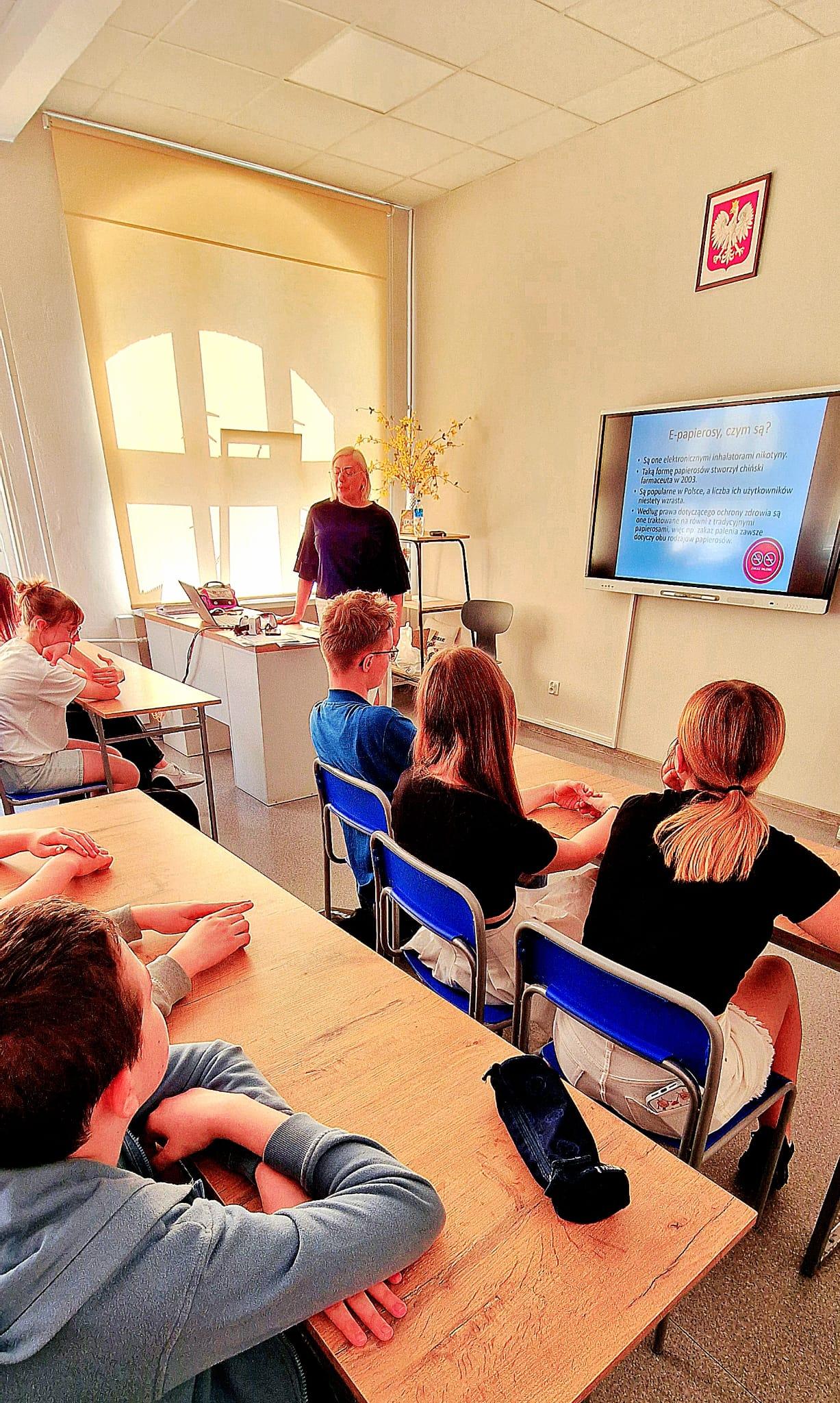 - W Szkole Podstawowej Nr 2 z Oddziałami Integracyjnymi w Środzie Wielkopolskiej oraz Szkole Podstawowej w Klęce przeprowadzono prelekcje dla uczniów klas VII. Podczas spotkań uczniowie poszerzyli swoją wiedzę na temat szkodliwości palenia tytoniu i inhalowania e-papierosów, którą mamy nadzieję wykorzystają z zyskiem dla siebie i swoich bliskich!! Dodatkowo podczas pogadanek omówiono skutki zdrowotne spożywania napojów energetycznych. Przestrzegano młodzież, że napoje energetyczne ze względu na swój skład, a szczególnie na zawartą w nich kofeinę nie są produktami odpowiednimi dla dzieci i młodzieży.