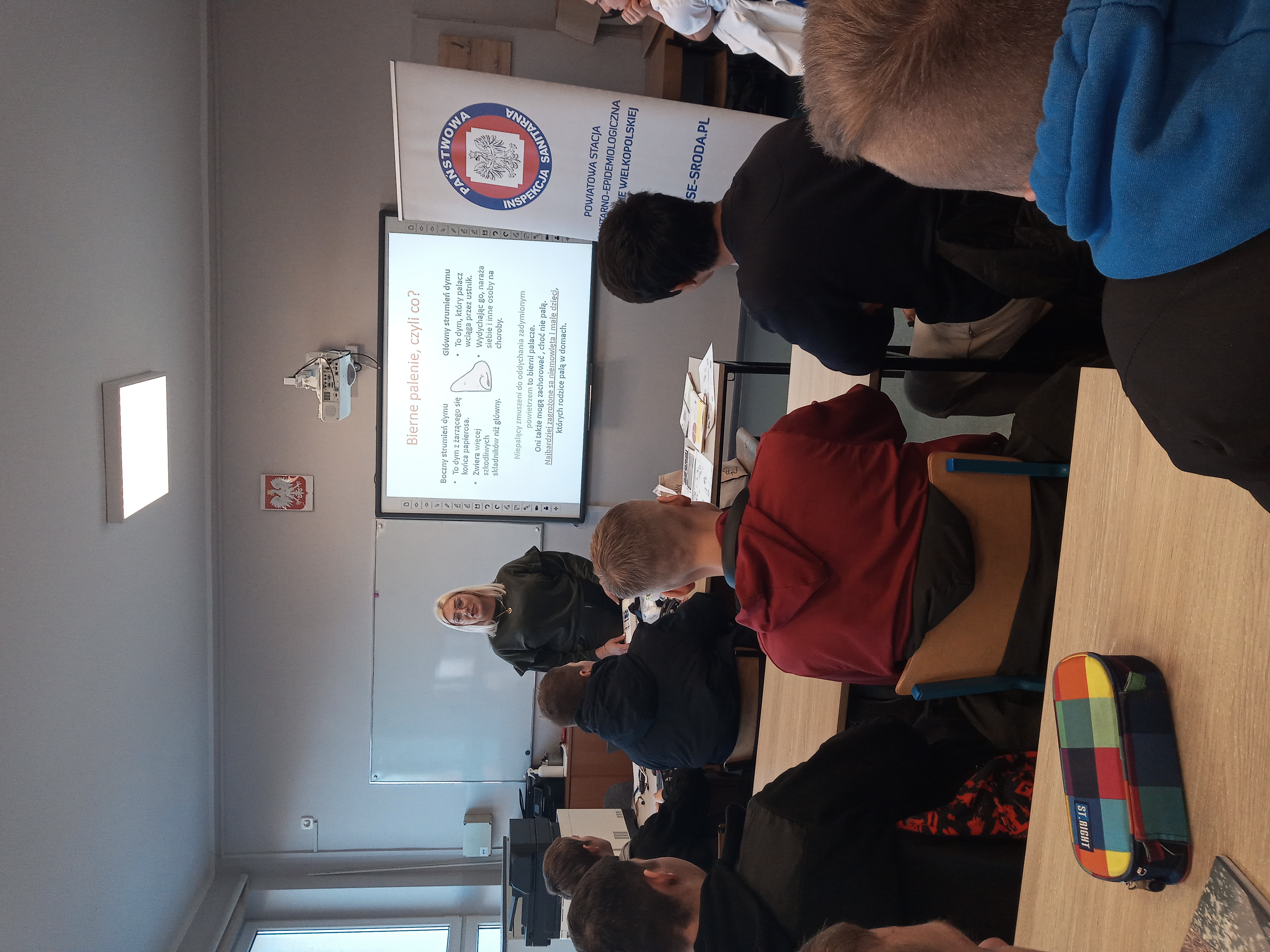 Z okazji Światowy Dzień Rzucania Palenia pracownik Powiatowej Stacji Sanitarno - Epidemiologicznej w Środzie Wielkopolskiej przeprowadził pogadanki dla uczniów szkół ponadpodstawowych z terenu powiatu. Wczoraj w Zespole Szkół Rolniczych w Środzie Wielkopolskiej dla uczniów z klasy I Branżowej Szkoły Zawodowej kształcącej w zawodzie mechanik i ślusarz, wcześniej 16 listopada dla uczniów klasy II Liceum w Centrum Kształcenia Zawodowego i Ustawicznego w Środzie Wielkopolskiej. Podczas pogadanek przedstawiono historię palenia tytoniu, skład dymu tytoniowego i jego wpływ na organizm ludzki, czym jest bierne palenie, jak przebiega sposób uzależniania się od nikotyny, omówiono prawdy i mity o e-papierosach. Chętni uczniowie mogli zbadać zawartość tlenku węgla (CO) w wydychanym powietrzu przy pomocy smokerlyzera oraz przymierzyć alko i narkogogle aby przekonać się jak środki psychoaktywne wpływają na nasze postrzeganie rzeczywistości.