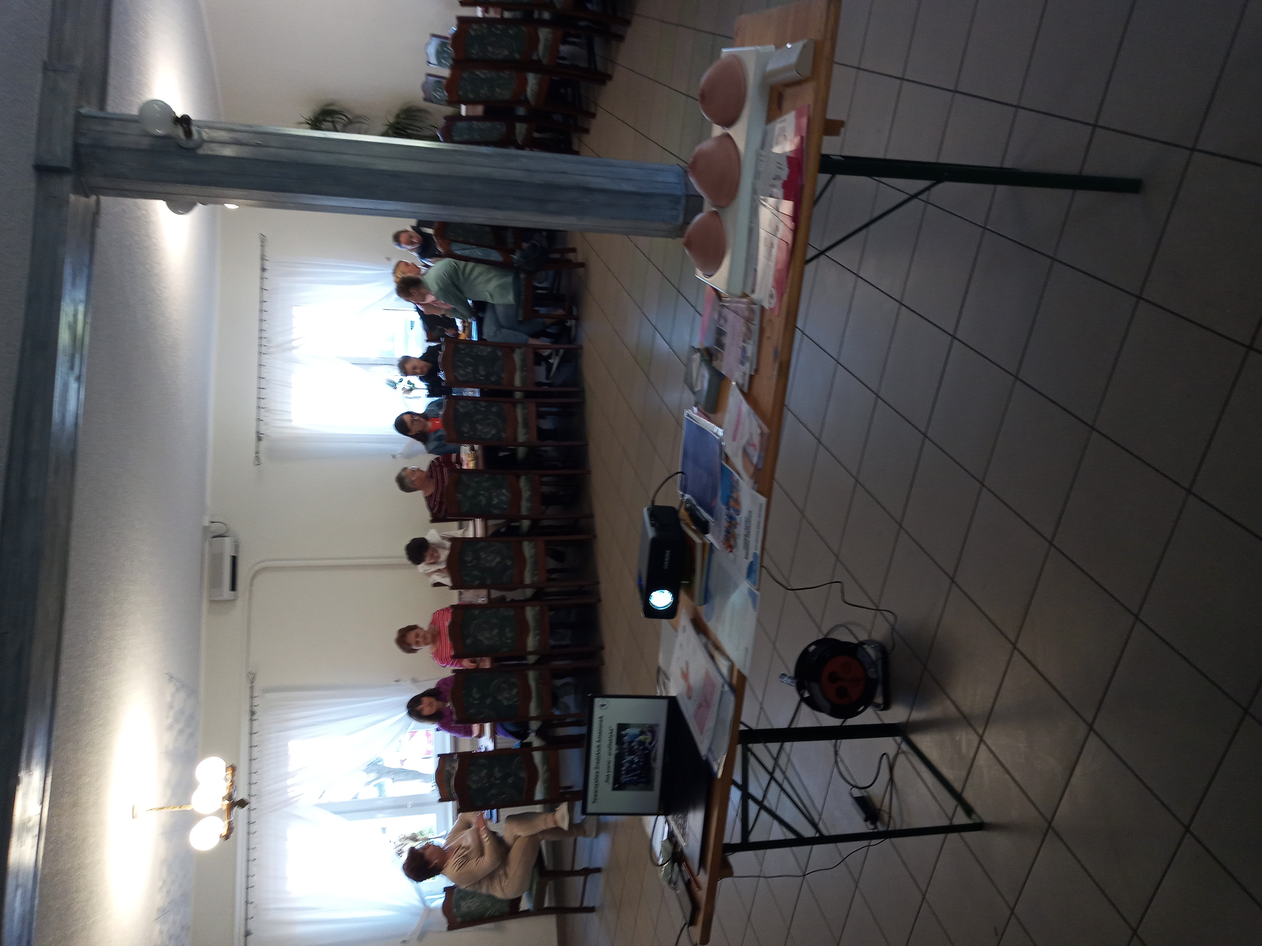 W sobotę 26 kwietnia odbyło się pierwsze w tym roku szkolenie w ramach realizacji projektu edukacyjnego w zakresie profilaktyki raka piersi pt.: „Co kryją Twoje piersi?”. Tym razem spotkaliśmy się z członkami i sympatykami Kola Gospodyń Wiejskich i Gospodarzy w Połażejewie, mieszkańcami sołectw: Połażejewo, Tadeuszowo i Rumiejki. Zebrane panie z uwagą wysłuchały wykładów. Aneta Oporowska - prezes Towarzystwa Średzkich Amazonek przedstawiła dane epidemiologiczne dot. zachorowań na raka piersi, podkreślała wagę i znaczenie profilaktyki – regularnych badań – mammograficznych oraz comiesięcznego samobadania. Omówiono zasady i metody samobadania. Pracownik średzkiego Sanepidu zwrócił uwagę zabranych na wielką rolę prostego samobadania w profilaktyce nowotworów jąder i gruczołu krokowego u mężczyzn. Przypomniano, że te choroby, choć poważne, wykryte we wczesnym stadium są w wielu wypadkach w pełni wyleczalne. Dlatego tak ważne jest, by panowie regularnie wykonywali badania profilaktyczne oraz dbali o zdrowy tryb życia.