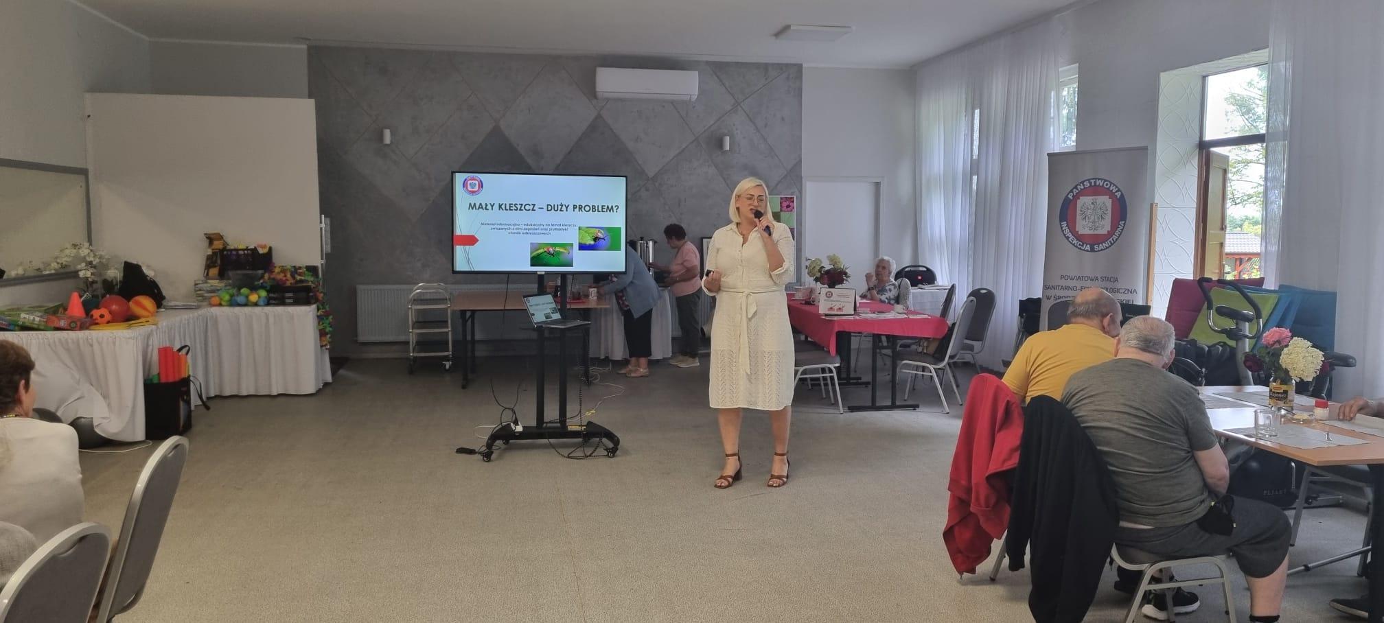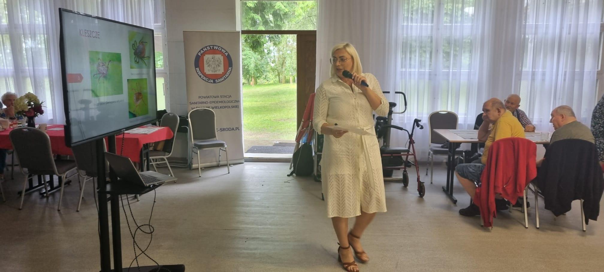 Państwowy Powiatowy Inspektor Sanitarny w Środzie Wielkopolskiej informuje, że w dniu 19.06.2023 r. w świetlicy Rodzinnych Ogródków Działkowych, ul. Wrzesińska, 63-000 Środa Wielkopolska, odbyło się szkolenie w ramach prowadzonej profilaktyki chorób odkleszczowych przeprowadzone przez pracownika Oświaty Zdrowotnej i Promocji Zdrowia. Uczestnicy „Wczasów dla Seniorów” organizowanych przez Ośrodek Pomocy Społecznej w Środzie Wielkopolskiej, dowiedzieli się, gdzie występują i jak żerują kleszcze, a także jak zmniejszyć ryzyko ukąszenia, stosując repelenty. Zaprezentowano również prawidłowe sposoby usuwania kleszczy za pomocą kleszczołapek, pęsety, lassa.