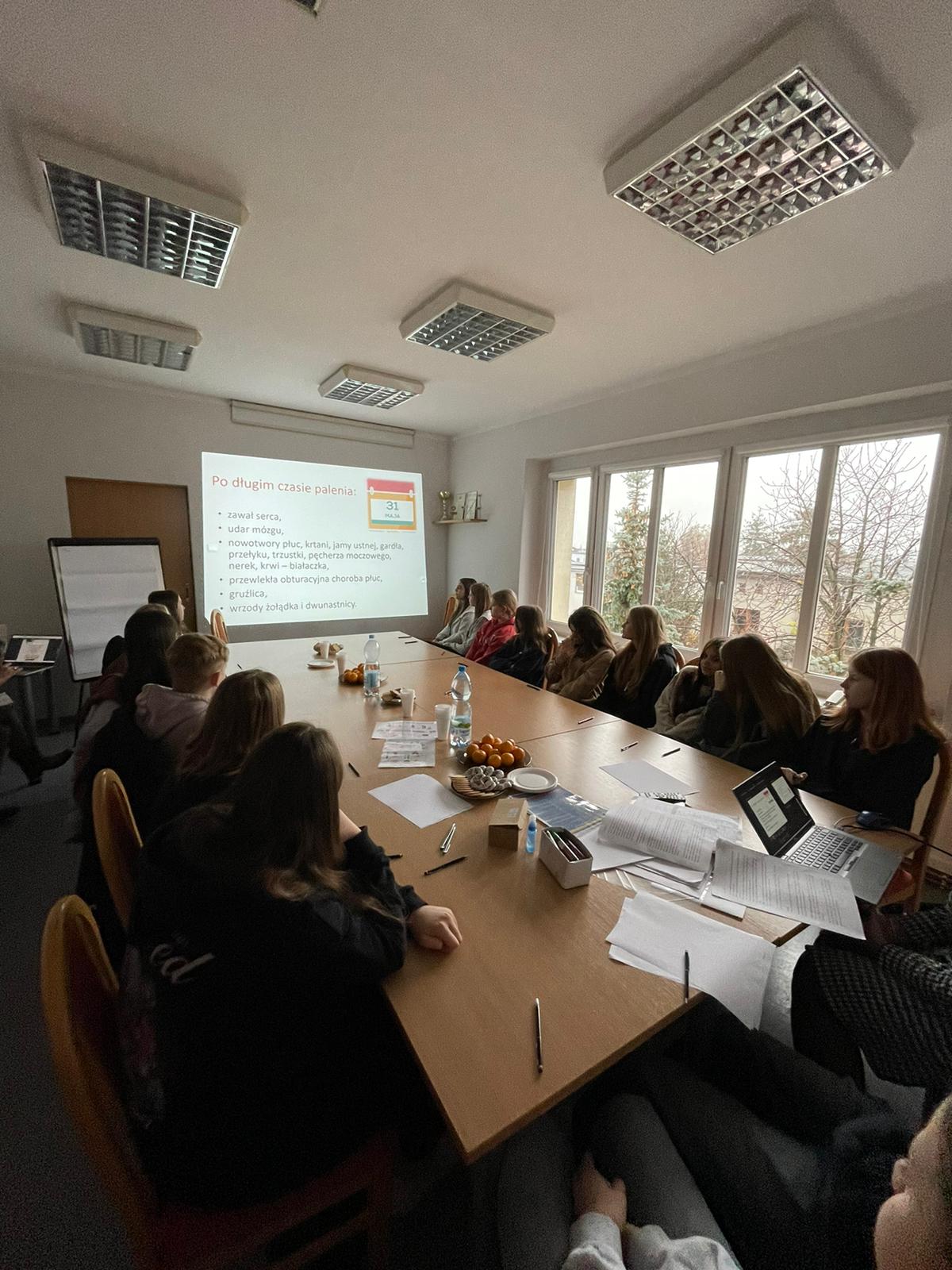 że 21 listopada 2023 r. w siedzibie Stacji, w ramach kontynuacji projektu „Młodzieżowi Liderzy Zdrowia – kontra tytoń”, odbyło się kolejne szkolenie dla młodzieży.